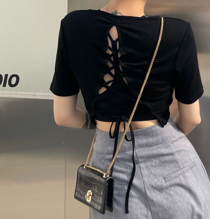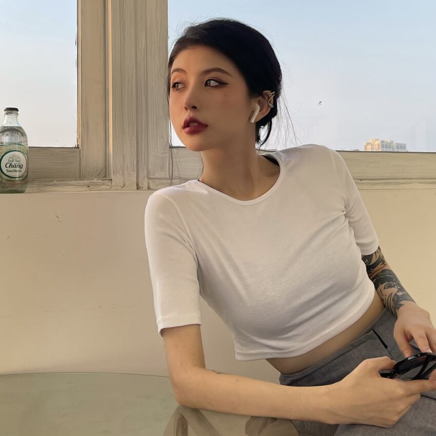 ショートTシャツレディース夏服韓国ファッショントレンドラウンドネックトップス 夏物 Oネック スタイル コーデ モノクロ Studio5020404081