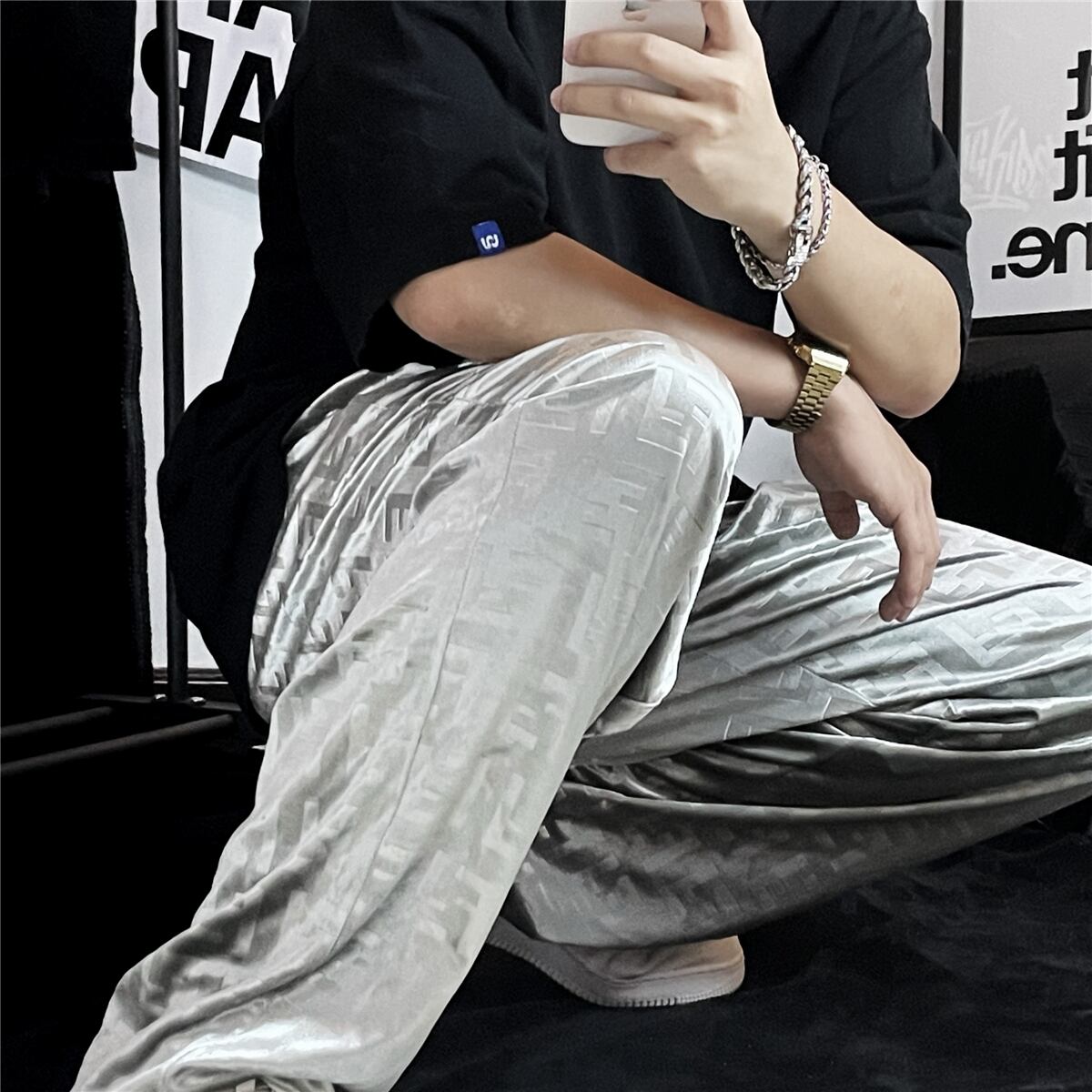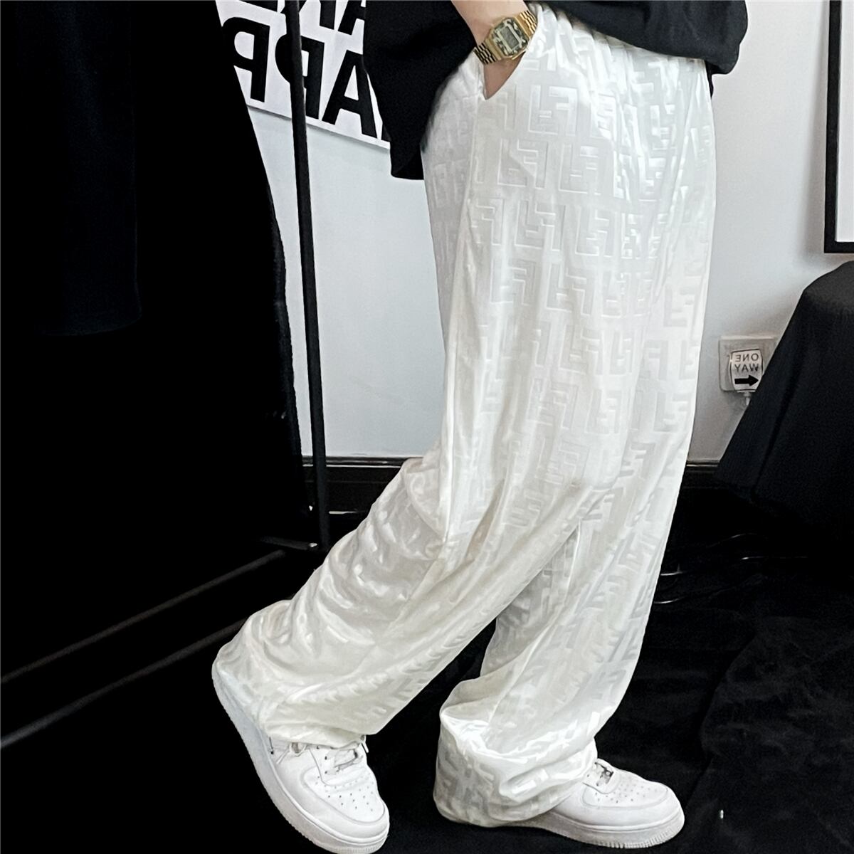 厚みカジュアルパンツ レディース夏服スタイル韓国ファッションダークルーズハイウェストウェストワイドレッグ 夏物 ワイドパンツ ウエスト コーデ モノクロ Studio90144817573 | pLegLad Studios