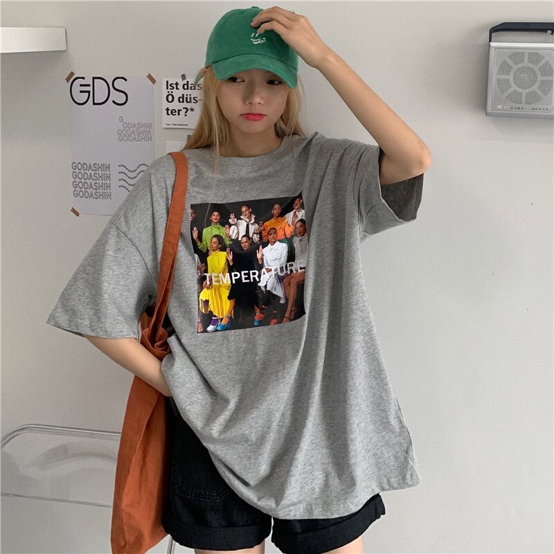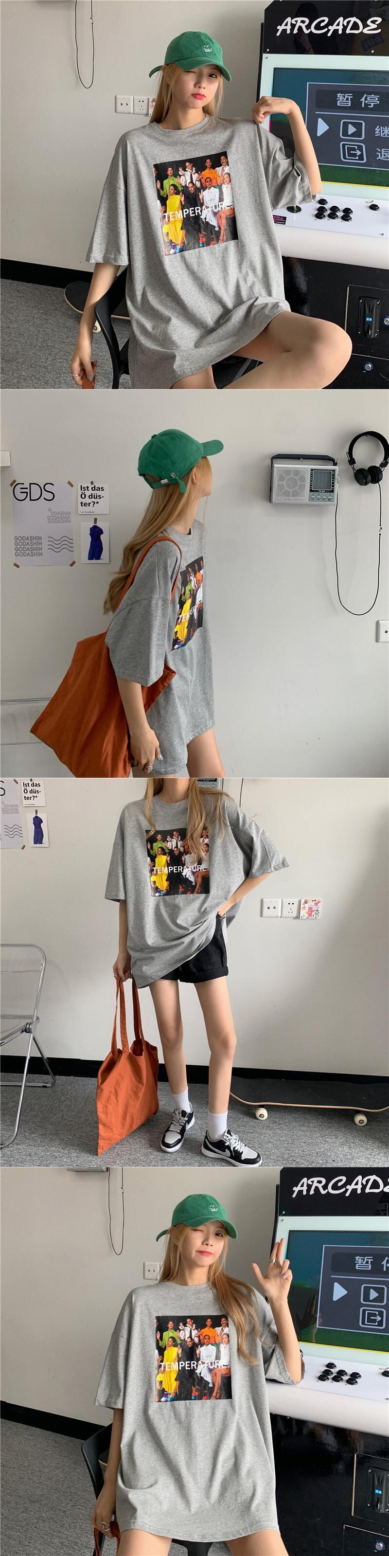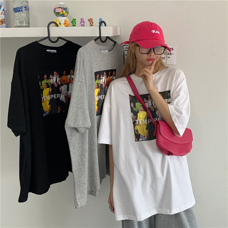 Tシャツシャツ レディース夏服韓国ファッショントレンドスタンダードプリントルーズ レトロ 夏物 スタイル コーデ モノクロ Studio39627006526