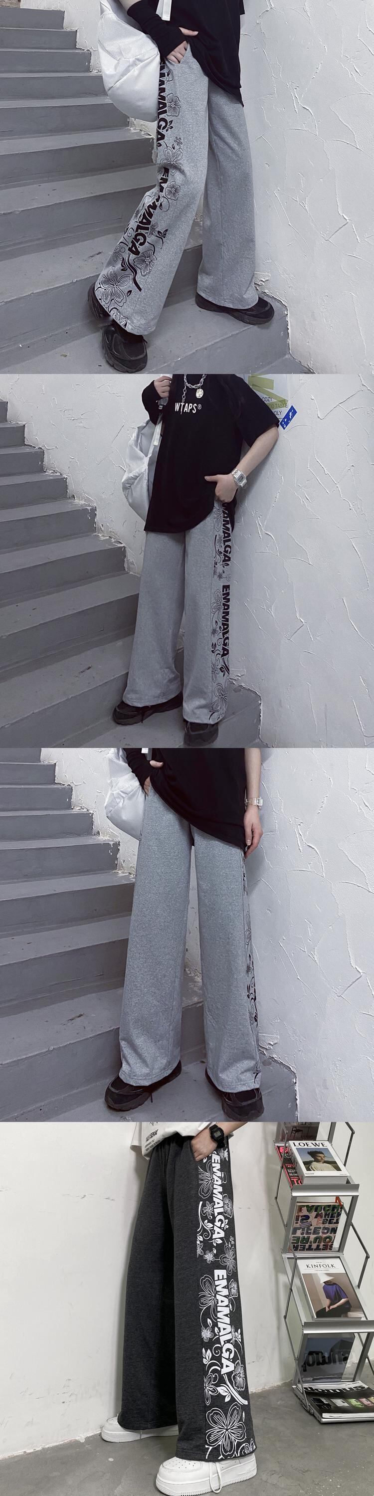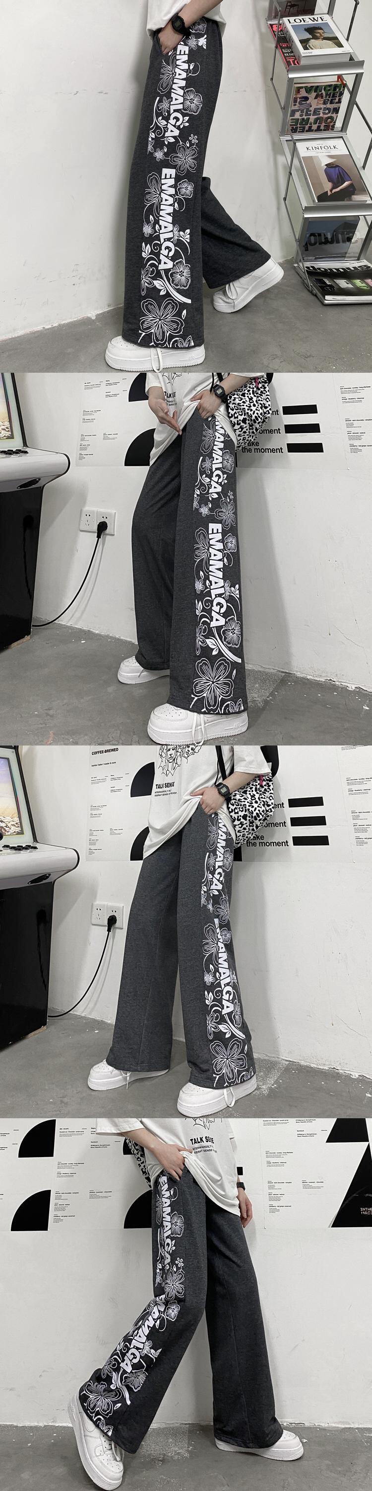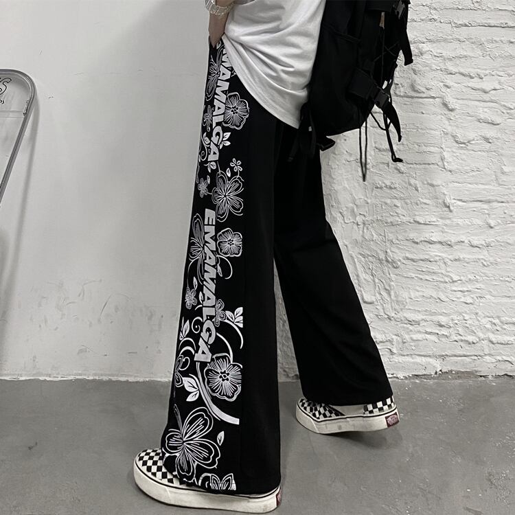 パンツ 秋物韓国ファッショントレンドスタンダードプリントハイウェストウェストルーズ レトロ オータム スタイル ウエスト コーデ モノクロ Studio2745858424 | pLegLad Studios