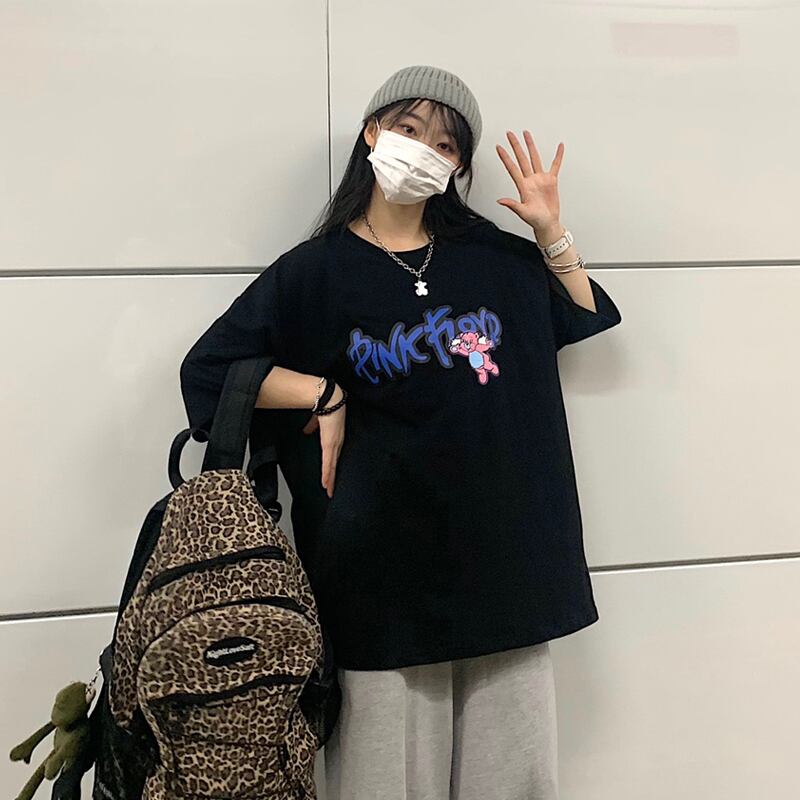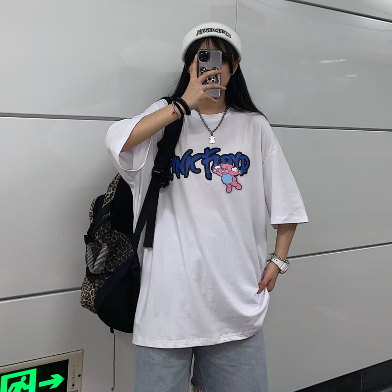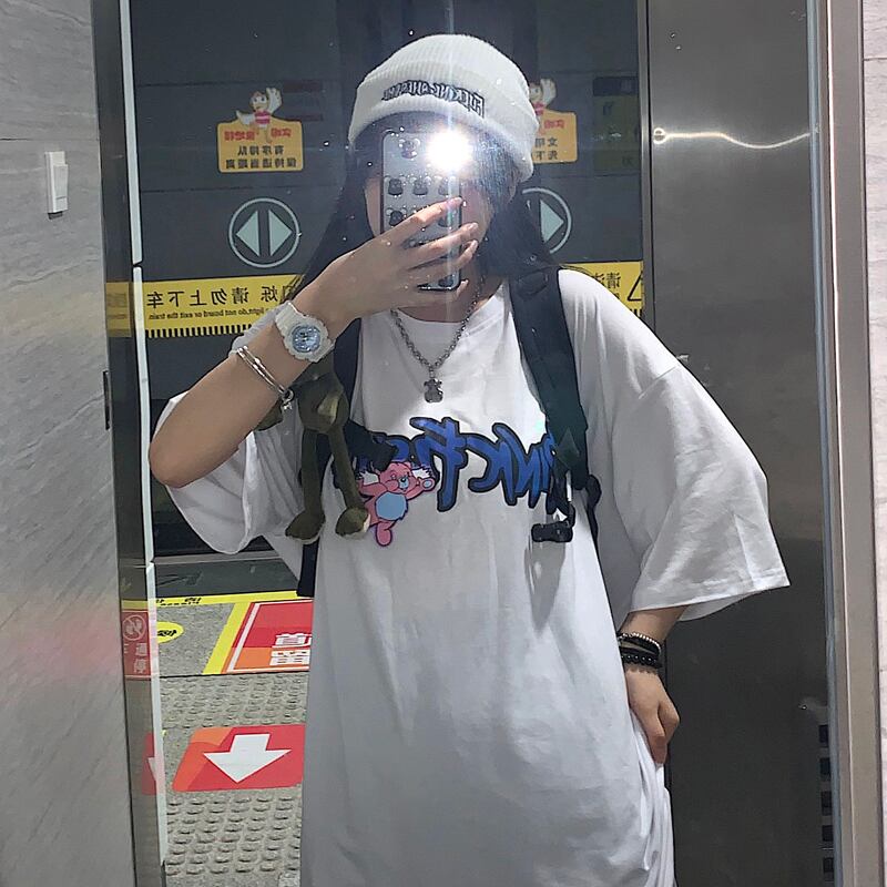 夏服スタイルトレンドプリント柄ルーズTシャツトップス レディース 原宿 夏物 ボーイズ コーデ モノクロ Studio83565585486