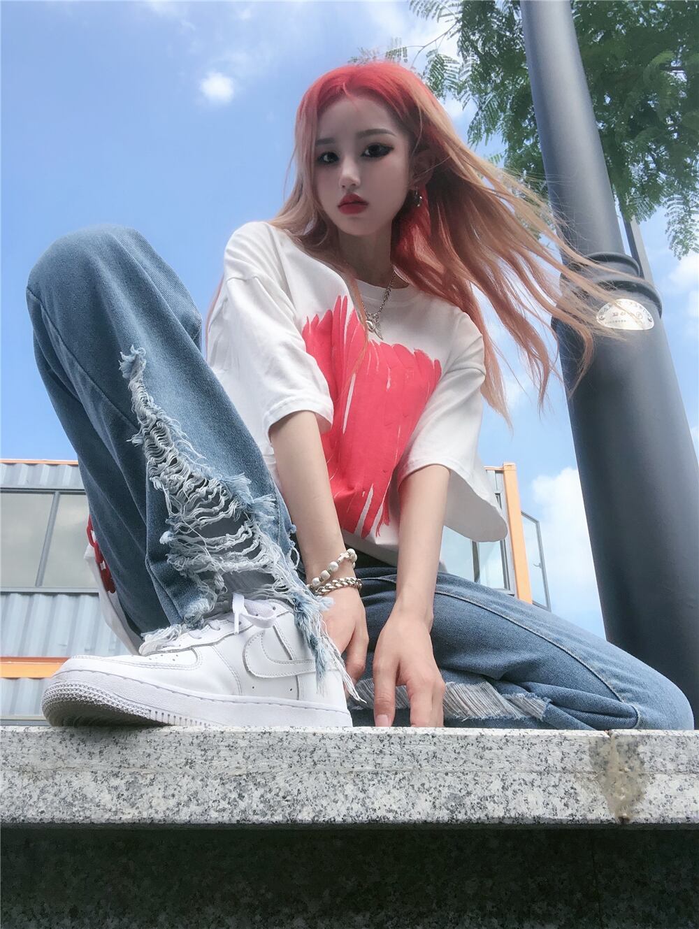 ジーンズ レディース夏服韓国ファッショントレンドルーズ薄手ハイウェストウェストワイドレッグパンツ 原宿 夏物 ワイドパンツ スタイル ウエスト Studios76956996381 | pLegLad Studios