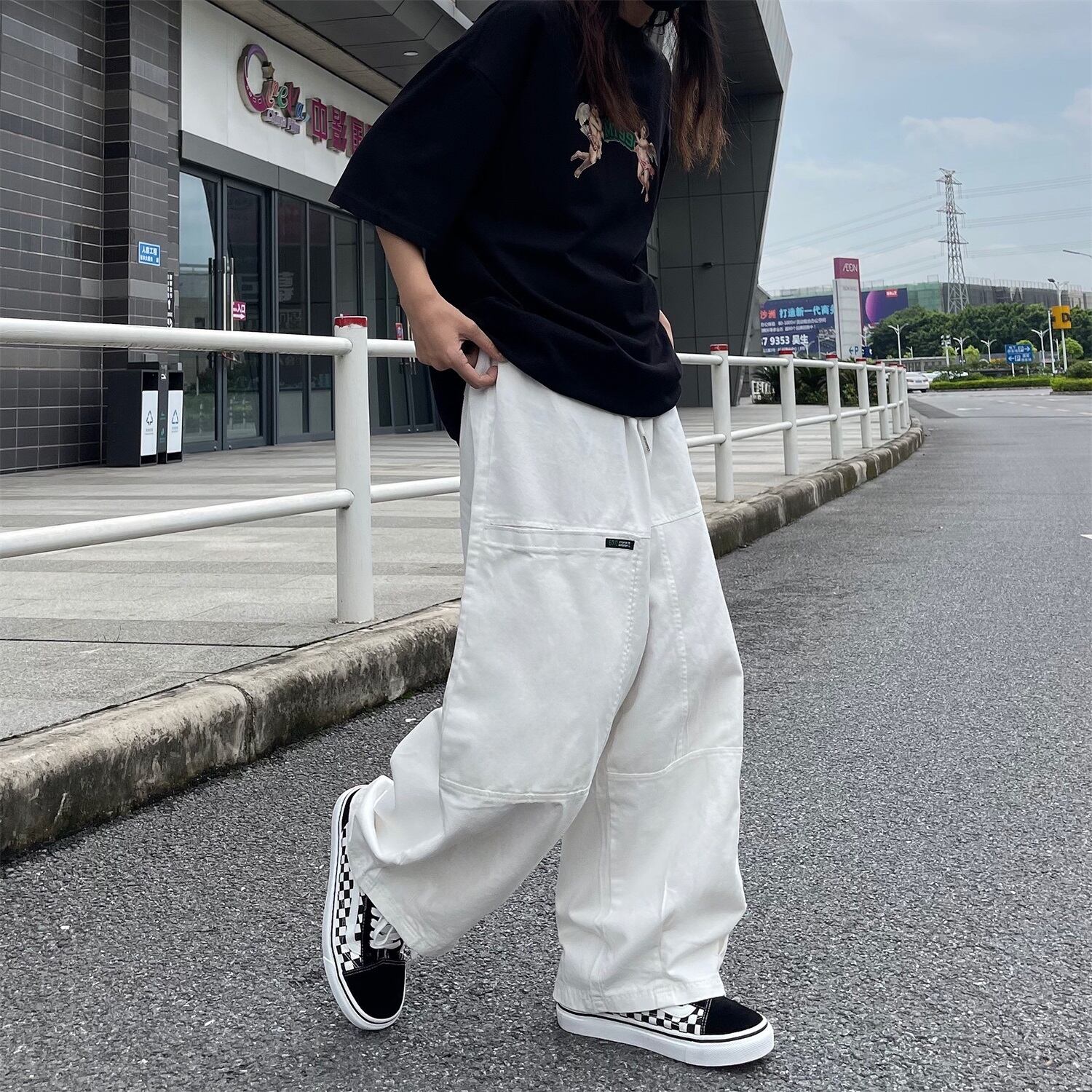 スタンダードパンツレディース夏服韓国ファッショントレンド薄手ホワイトハイウェストウェストルーズワイドレッグカジュアルパンツ レトロ 夏物 ワイドパンツ スタイル ウエスト Studios52111683 | pLegLad Studios