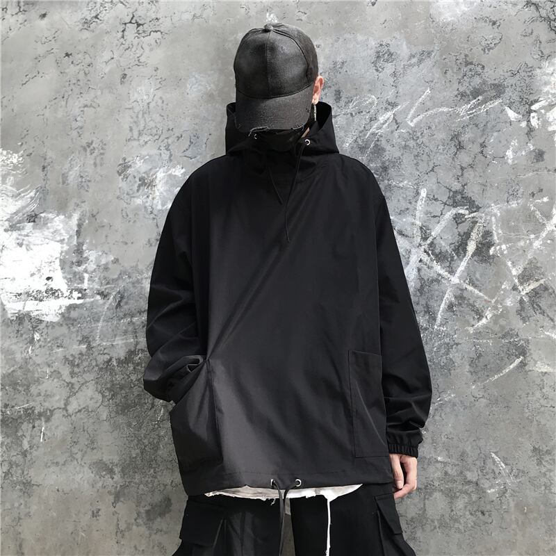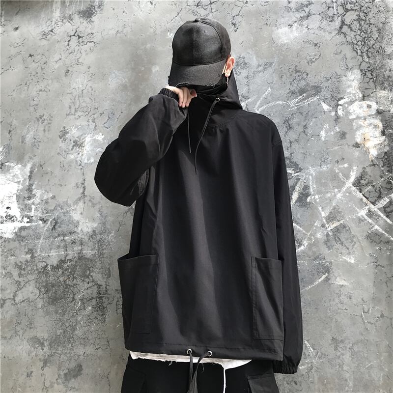 秋物韓国ファッショントレンドスタンダードブラックフードセーター ルーズジャケット メンズレディース ロング レトロ オータム スタイル 長袖 Studios68540149651 | pLegLad Studios