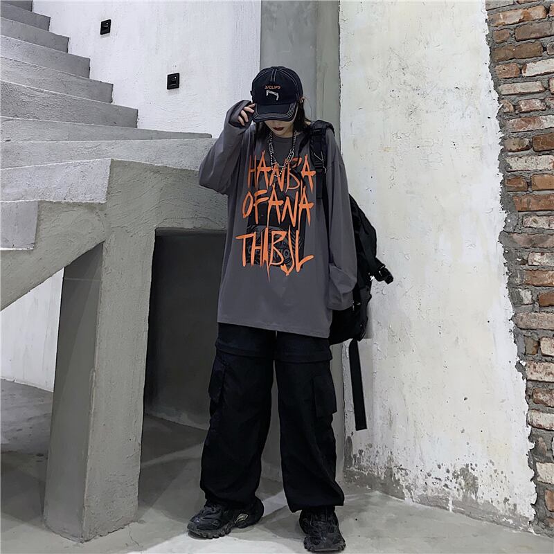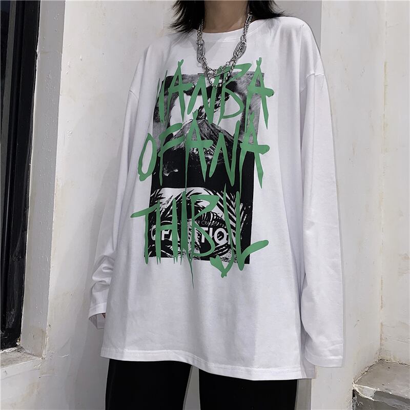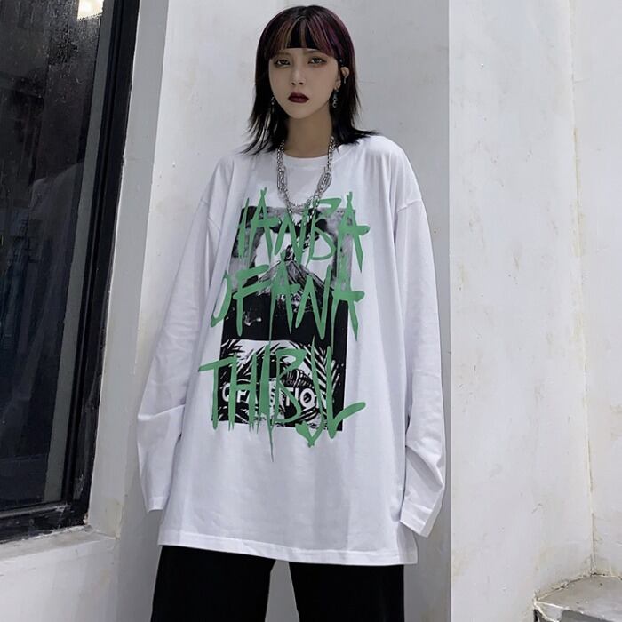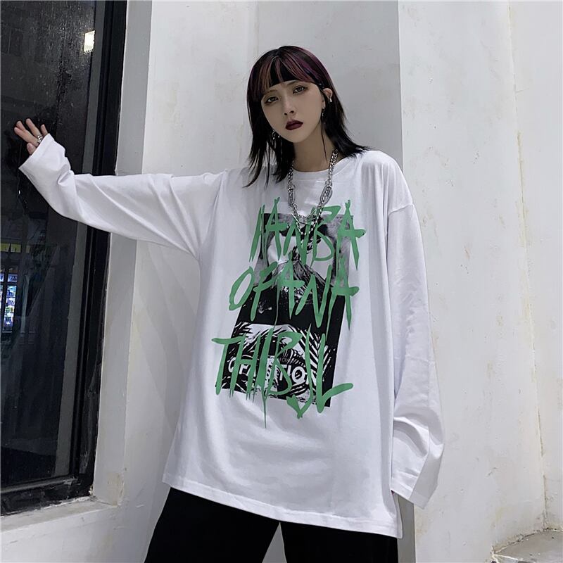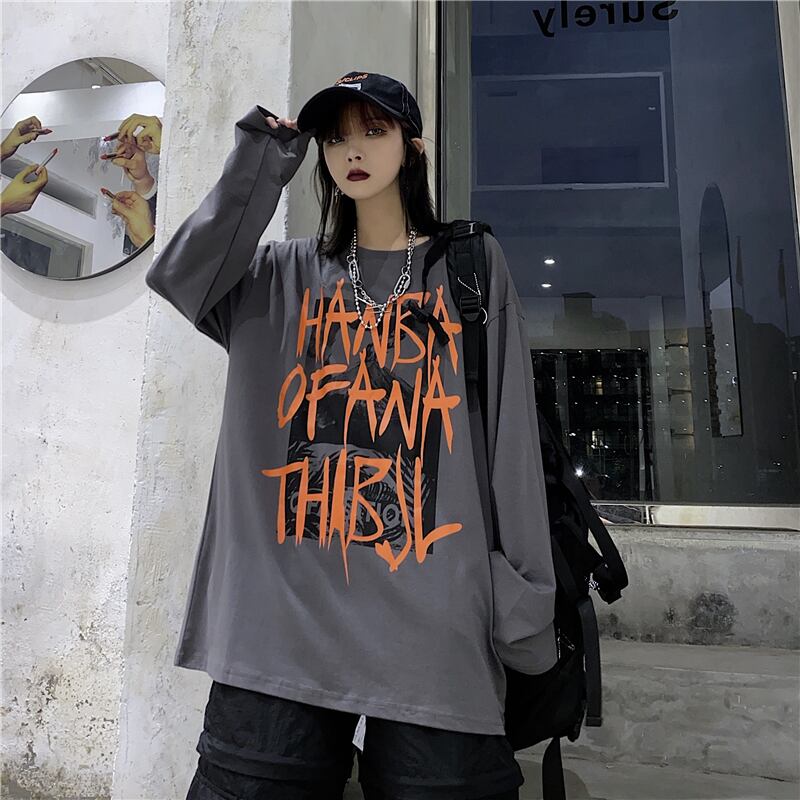 秋物韓国ファッショントレンドダークプリントゆったりシャツ トップス ルーズTシャツレディース ロング オータム スタイル 長袖 Studios19284143398 | pLegLad Studios