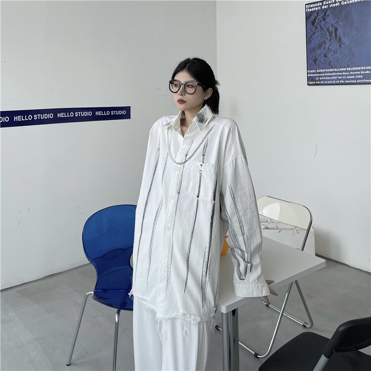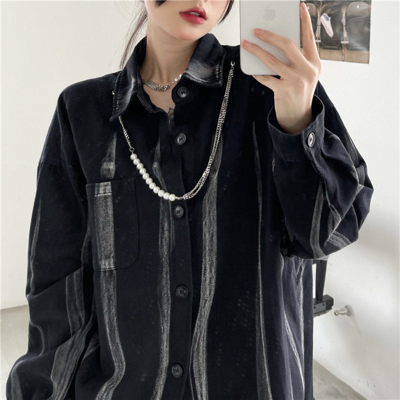 シャツ レディース秋物韓国ファッショントレンドスタンダードルーズカジュアルジャケット ロング レトロ オータム スタイル 長袖 Studios56709834135 | pLegLad Studios
