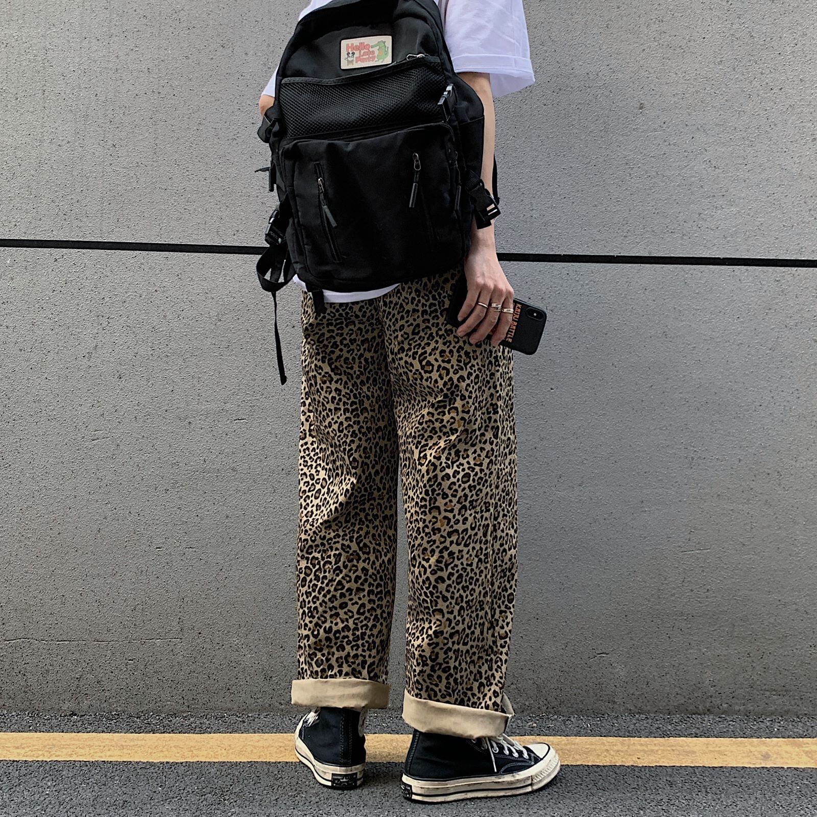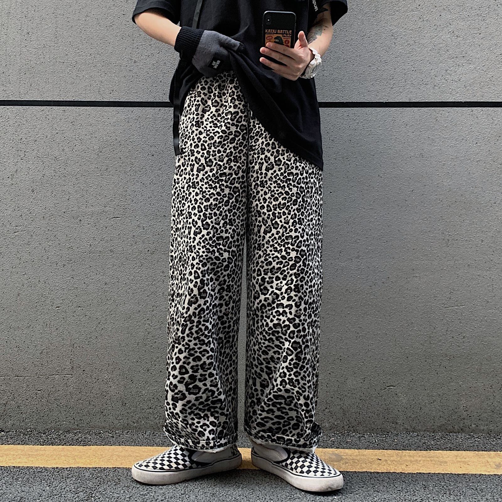 ワイドレッグカジュアルパンツ レディース韓国ファッショントレンドスタンダードレオパードプリント柄ルーズハイウェストウェストスリム レトロ ワイドパンツ スタイル ウエスト Studios46373234884 | pLegLad Studios