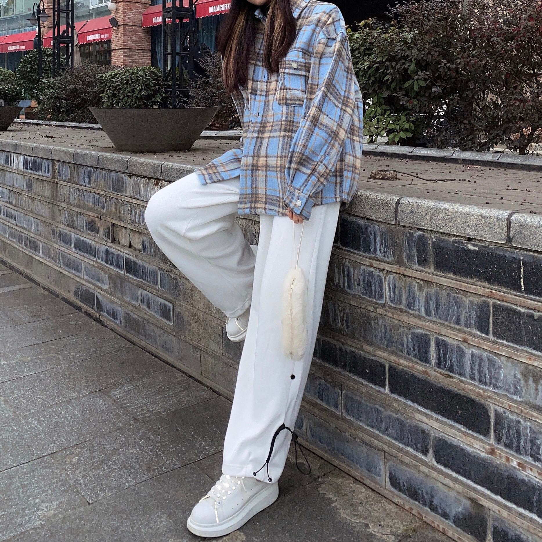 ホワイトカジュアルパンツ レディース韓国ファッショントレンドルーズハイウェストウェストワイドレッグ ワイドパンツ スタイル ウエスト Studios75476055895 | pLegLad Studios