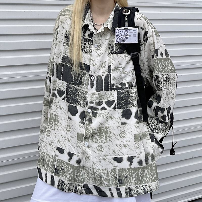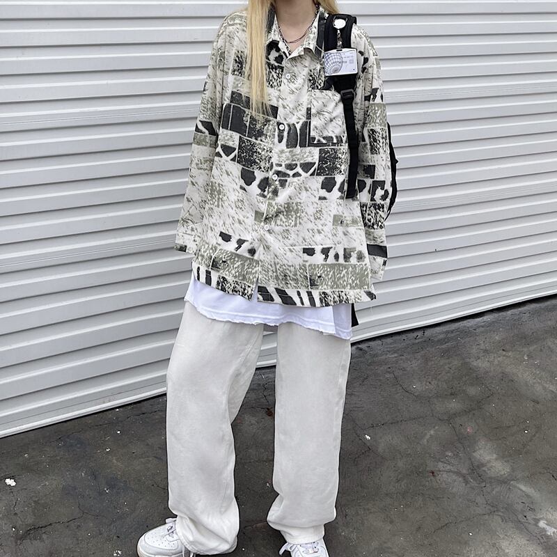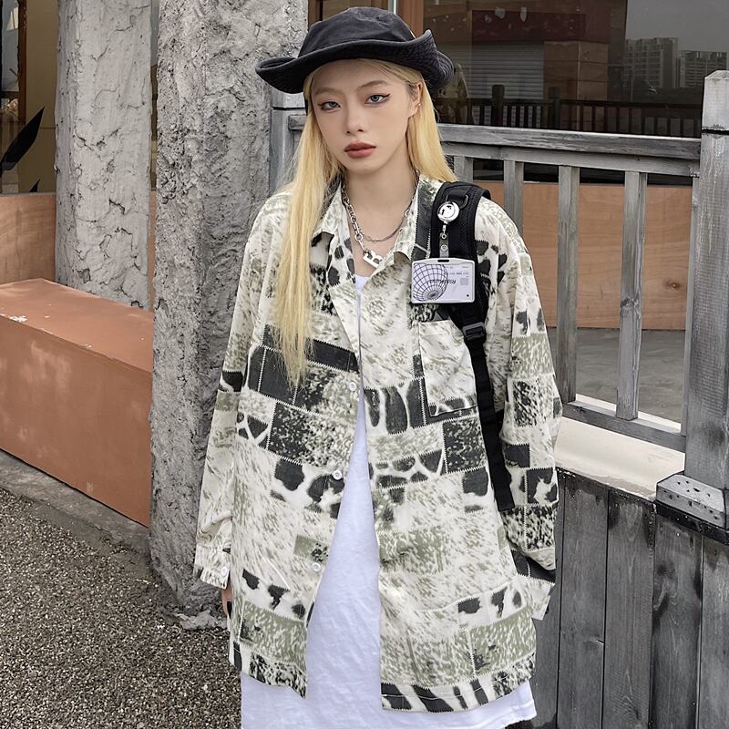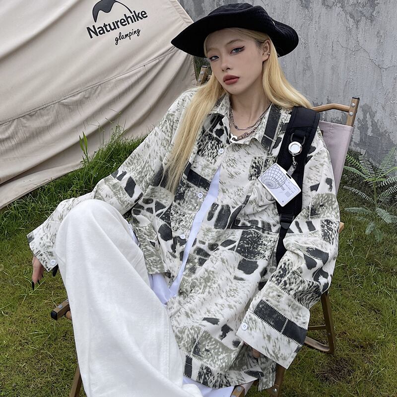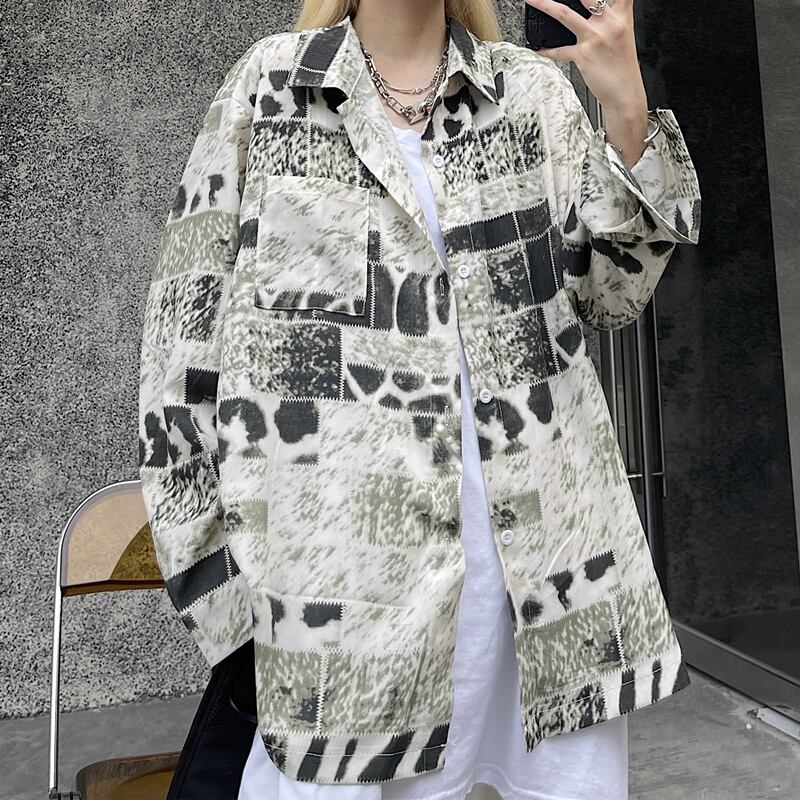 韓国ファッションシャツ レディース秋物トレンドルーズカジュアル ロング ストリート オータム ボーイズ スタイル 長袖 コーデ モノクロ Studio22408613705 | pLegLad Studios