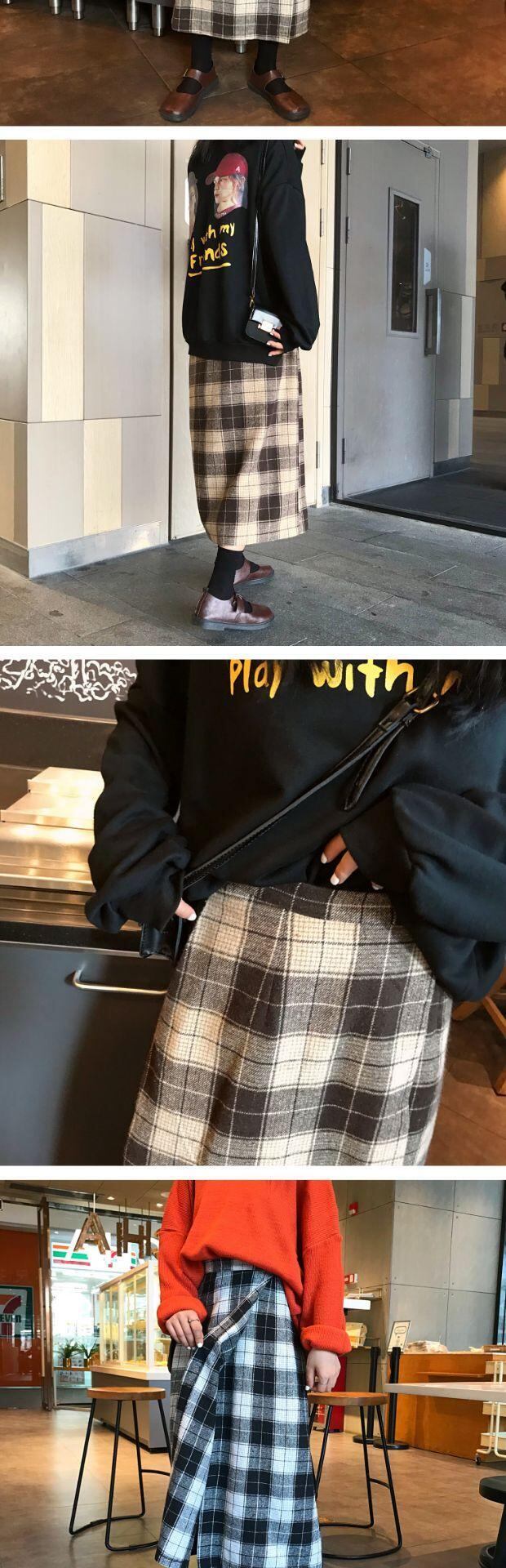 格子柄カラースカート スプリング秋物ハイウェストウェストトレンドスタンダードAライン レトロ 春物 オータム ウエスト ミドル丈 Studios90979753704 | pLegLad Studios