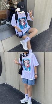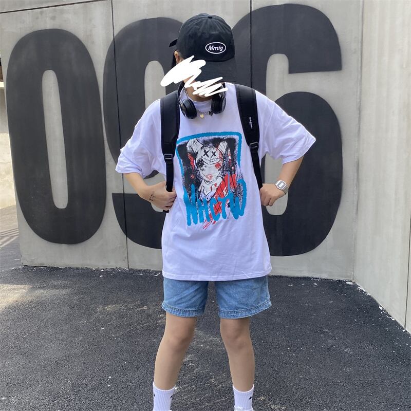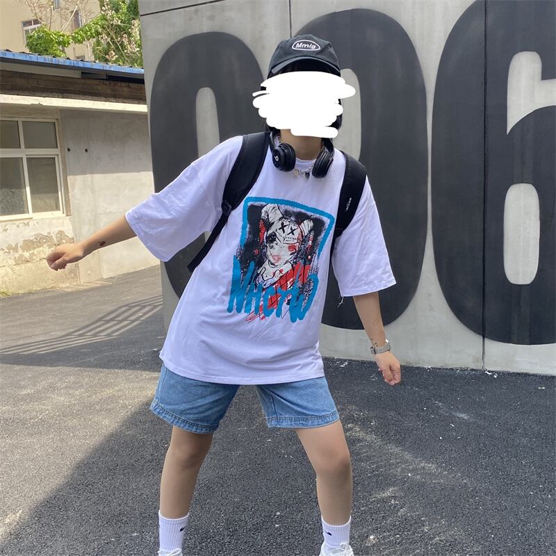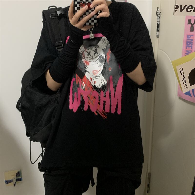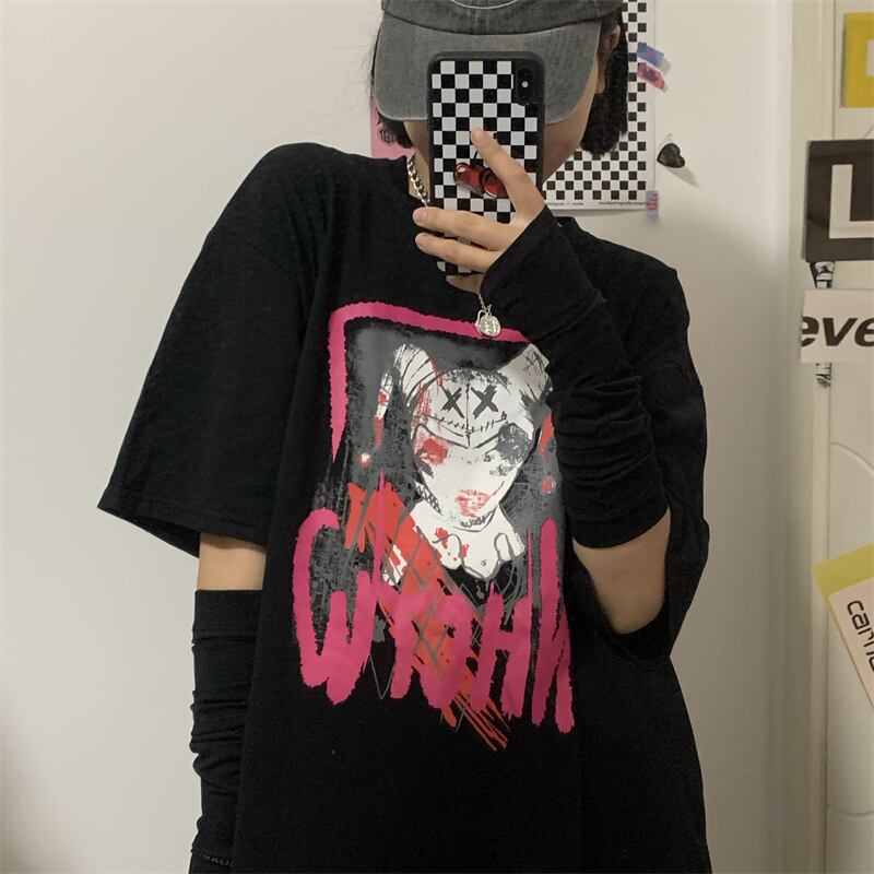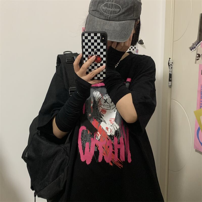 ゆったりシャツ レディース夏服韓国ファッショントレンドダークカジュアルラウンドネックTシャツトップス 夏物 Oネック スタイル コーデ モノクロ Studio4447556419 | pLegLad Studios