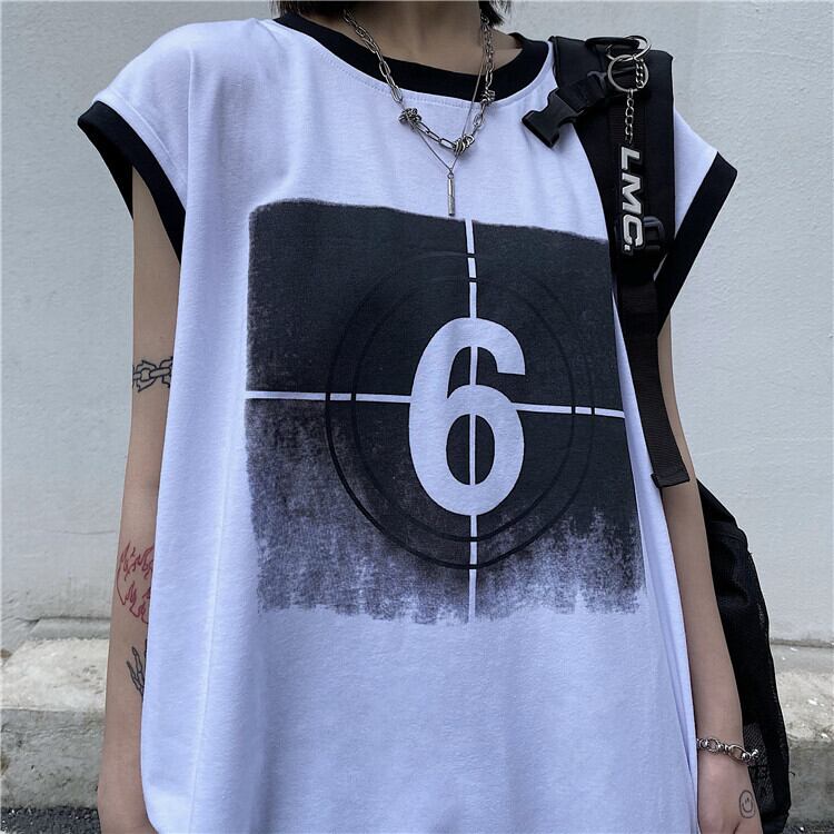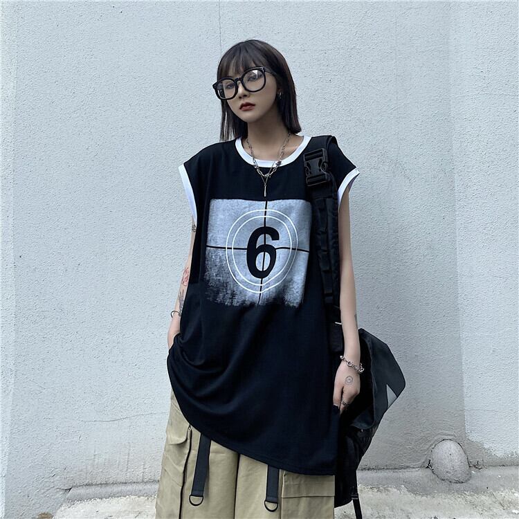 ノースリーブレディース夏服韓国ファッショントレンドスタンダードプリントカジュアルトップス レトロ 夏物 スタイル コーデ モノクロ Studio96144867201 | pLegLad Studios