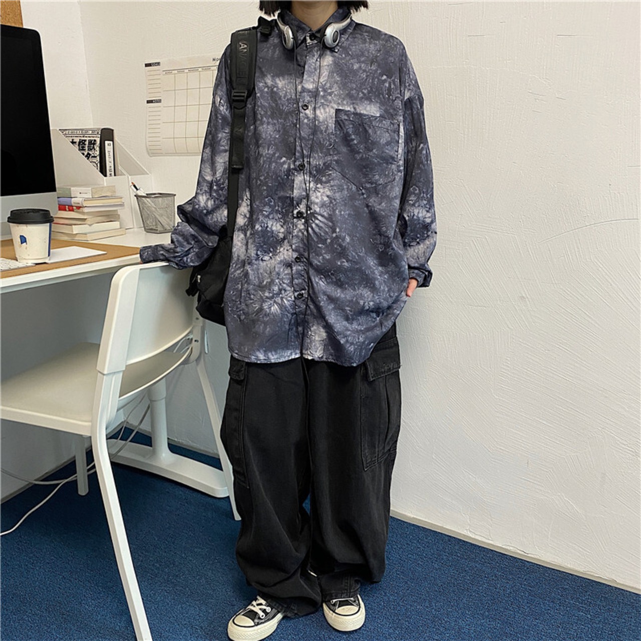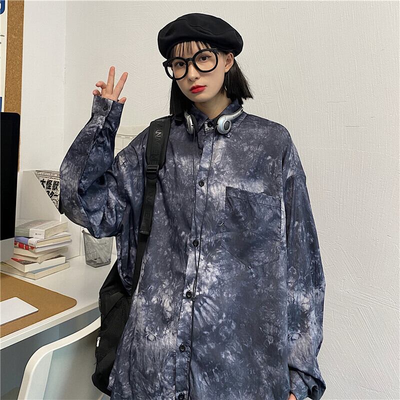 秋物韓国ファッショントレンドスタイルスタンダードスリムシャツ ルーズトップス レディース ロング レトロ 原宿 オータム 長袖 コーデ モノクロ Studio55902491463 | pLegLad Studios