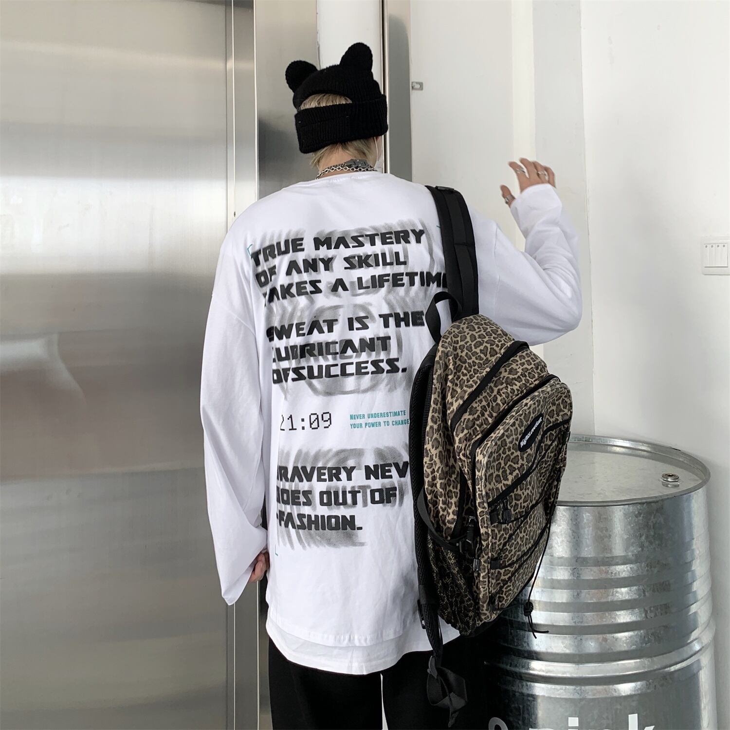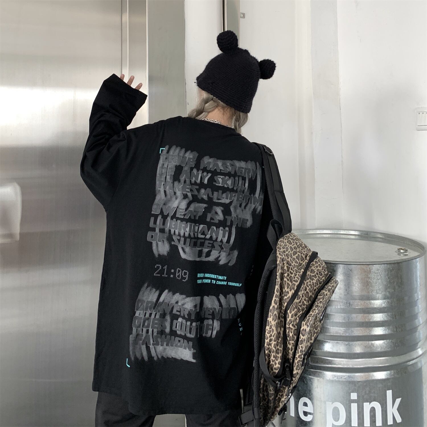 ブラックTシャツシャツ レディース夏服韓国ファッショントレンドダークプリントゆったり ロング 夏物 スタイル 長袖 コーデ モノクロ Studio75175519610 | pLegLad Studios