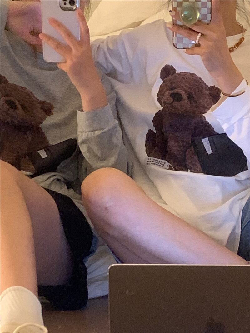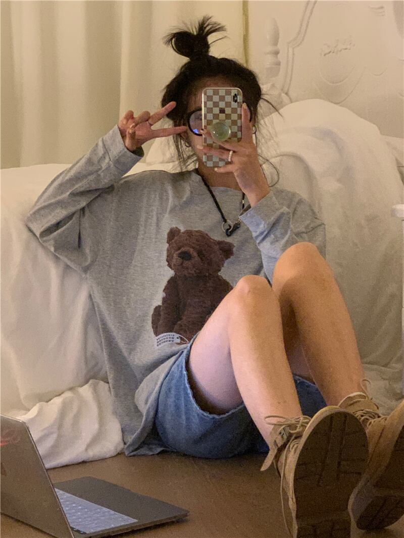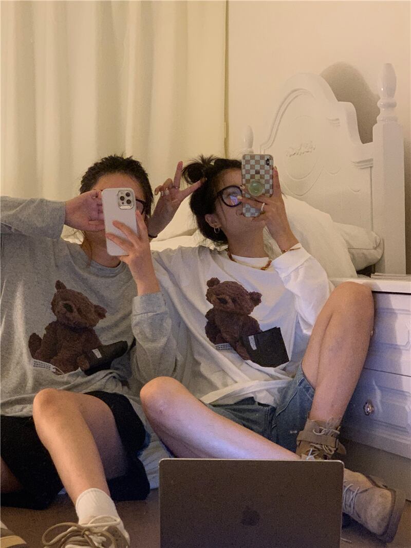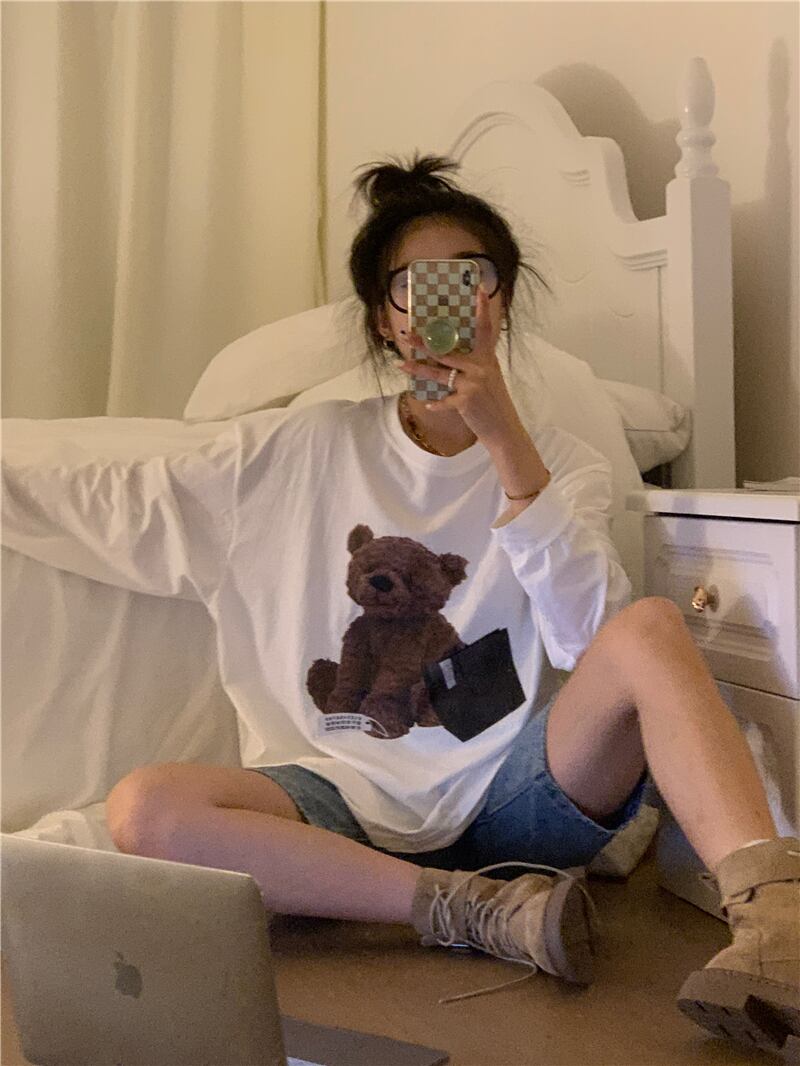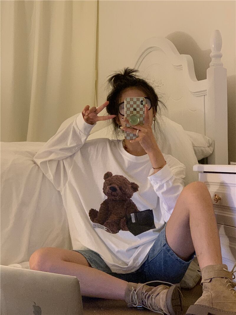 スタイルカジュアルゆったりシャツ レディース秋物韓国ファッショントレンドプリント柄ルーズTシャツ ロング オータム 長袖 コーデ モノクロ Studio60724402656 | pLegLad Studios