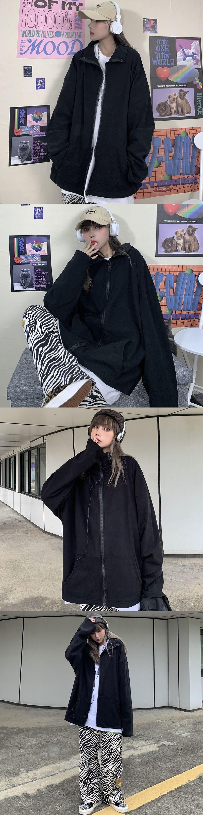 ジャケット レディース秋物韓国ファッショントレンドカラージッパーソリッド ルーズ ロング オータム ソリッドカラー スタイル 長袖 コーデ モノクロ Studio97721366772 | pLegLad Studios