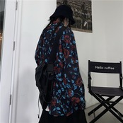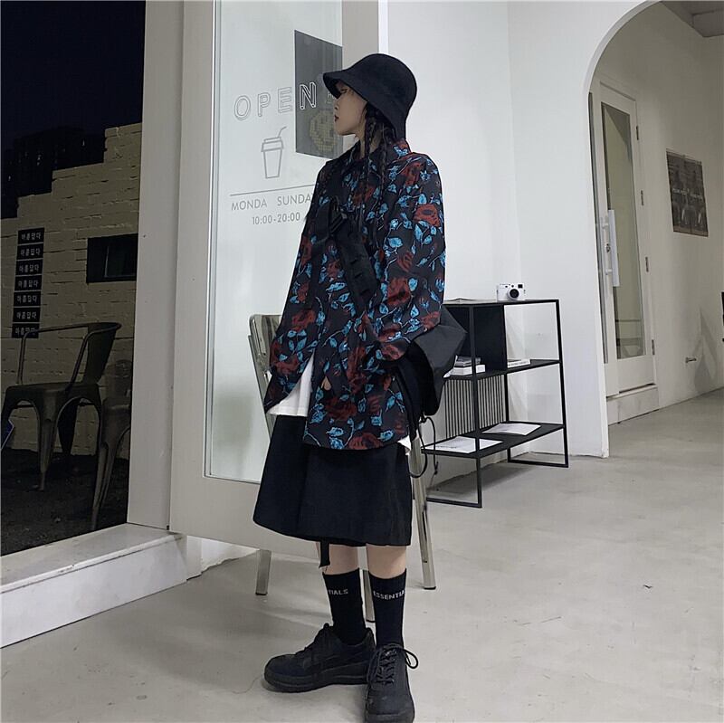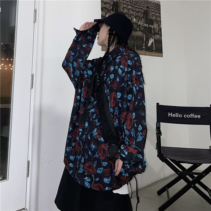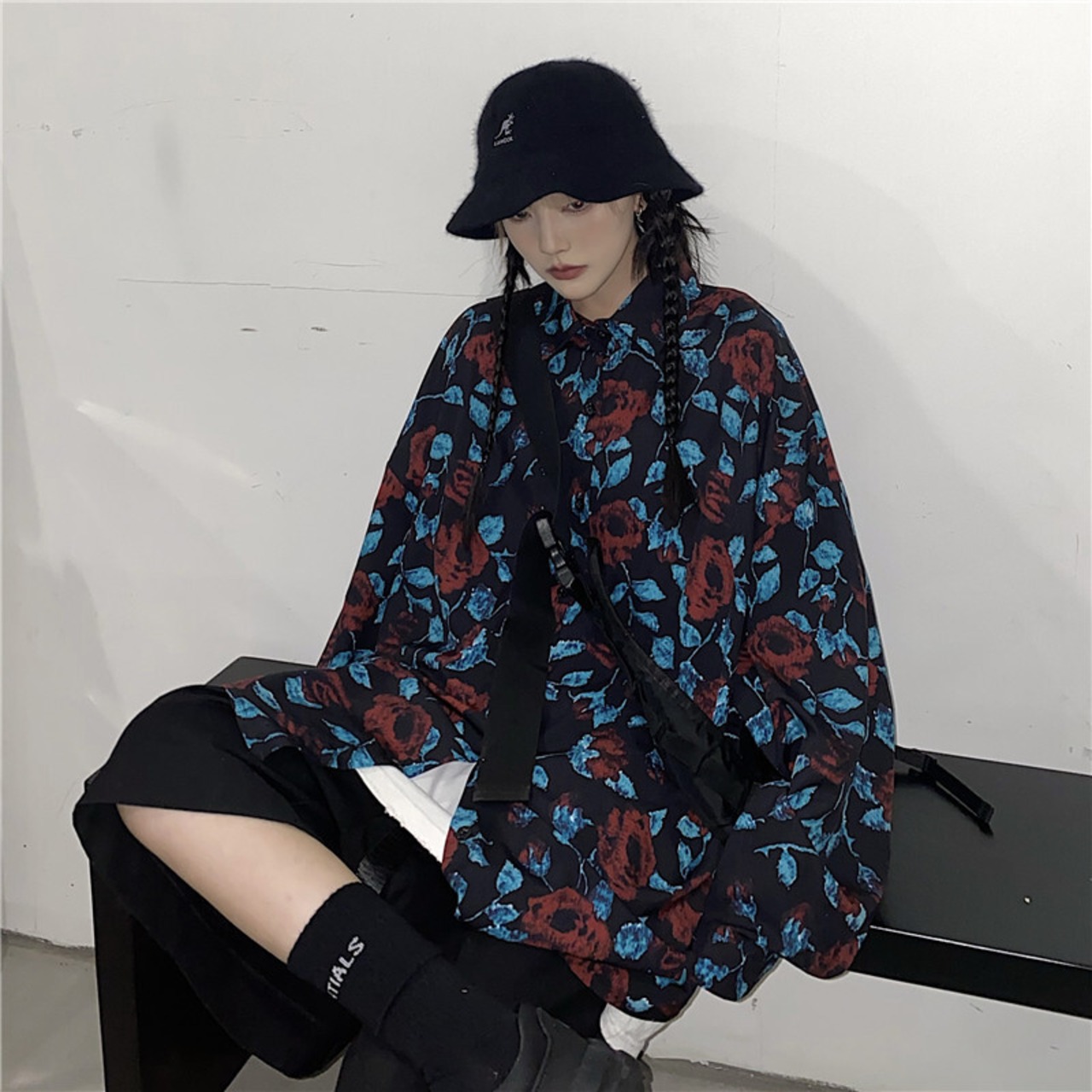 秋物韓国ファッショントレンドスタイルスタンダードFlowerデザイン プリント柄ルーズカジュアルシャツ レディース ロング レトロ 原宿 オータム フラワーデザイン 長袖 Studios7635212809 | pLegLad Studios