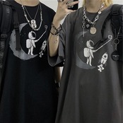 ゆったりシャツ レディース夏服韓国ファッショントレンドスタンダードプリントルーズTシャツトップス レトロ 夏物 スタイル コーデ モノクロ Studio77839450729 | pLegLad Studios