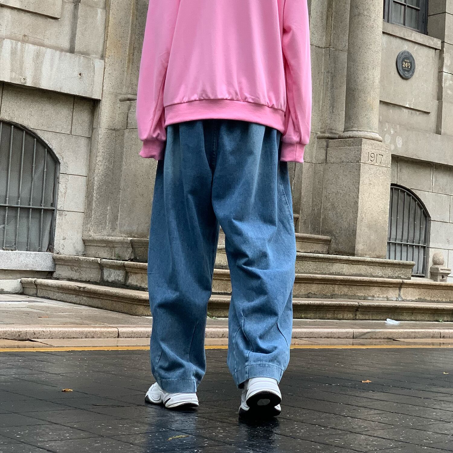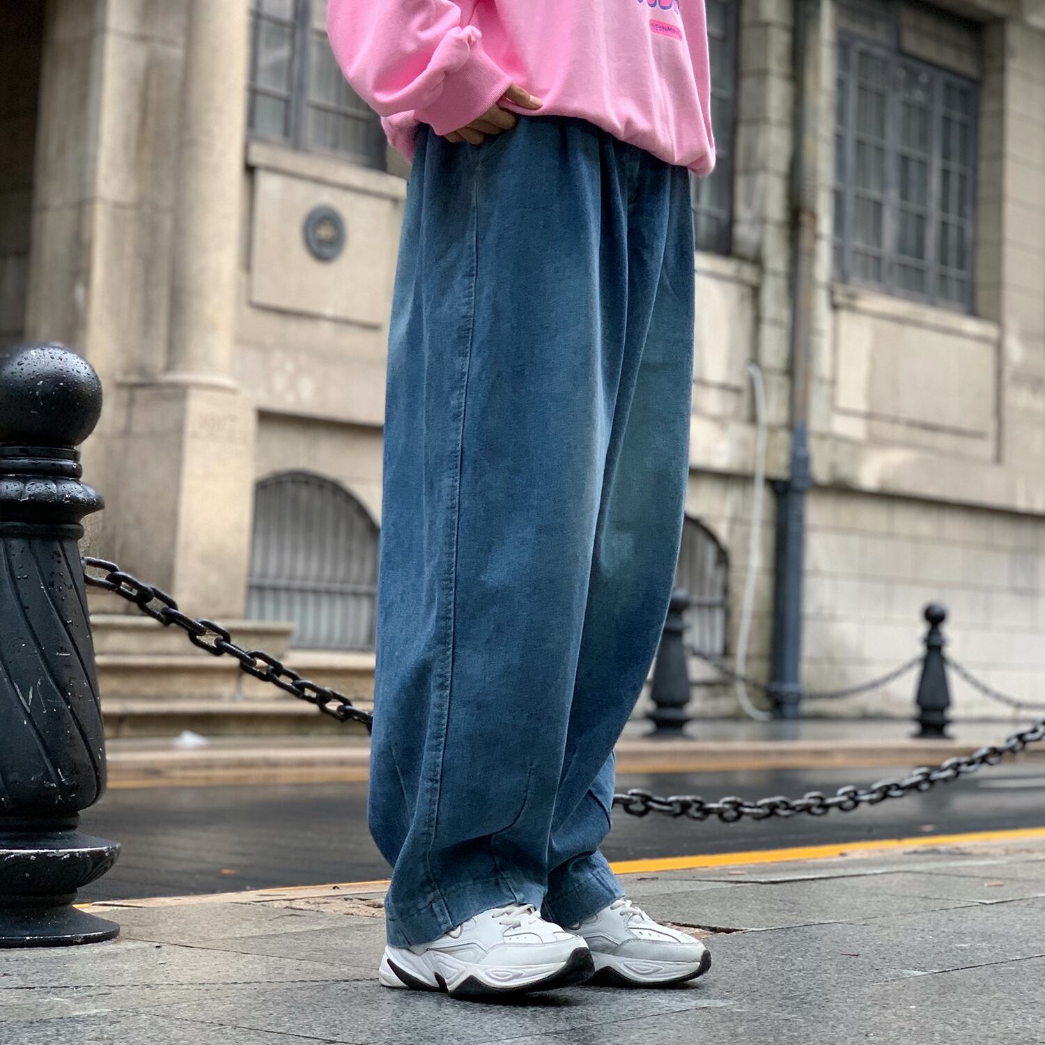 ジーンズ 秋物韓国ファッショントレンドルーズパンツ ハイウェスト オータム ショーツ ブルマー スタイル ウエスト コーデ モノクロ Studio63758212933 | pLegLad Studios