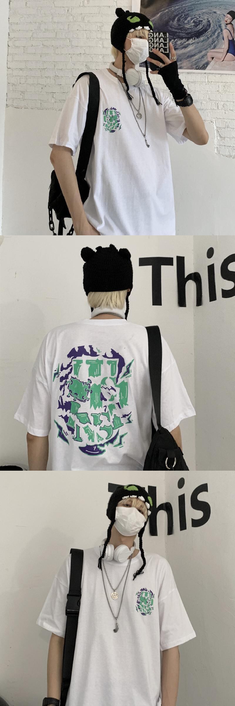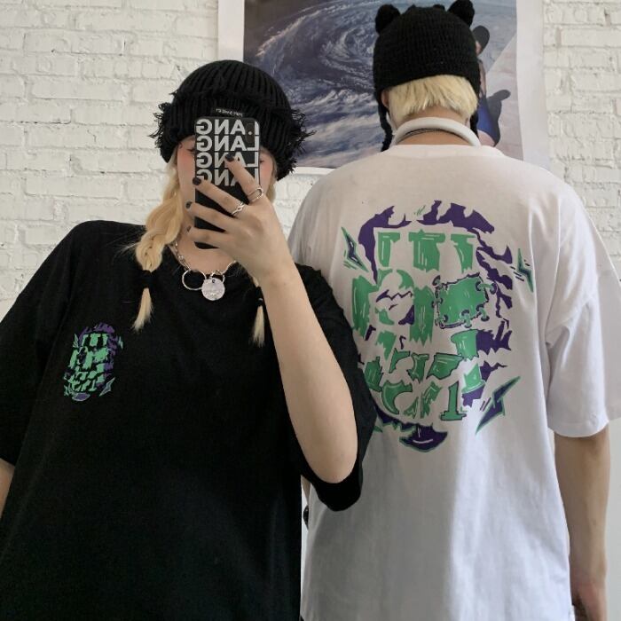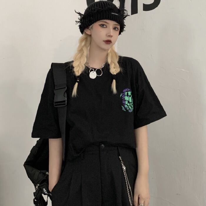 夏服ブラックブラウス レディース韓国ファッショントレンドダークプリントルーズカジュアルTシャツ 夏物 スタイル コーデ モノクロ Studio51822666126 | pLegLad Studios