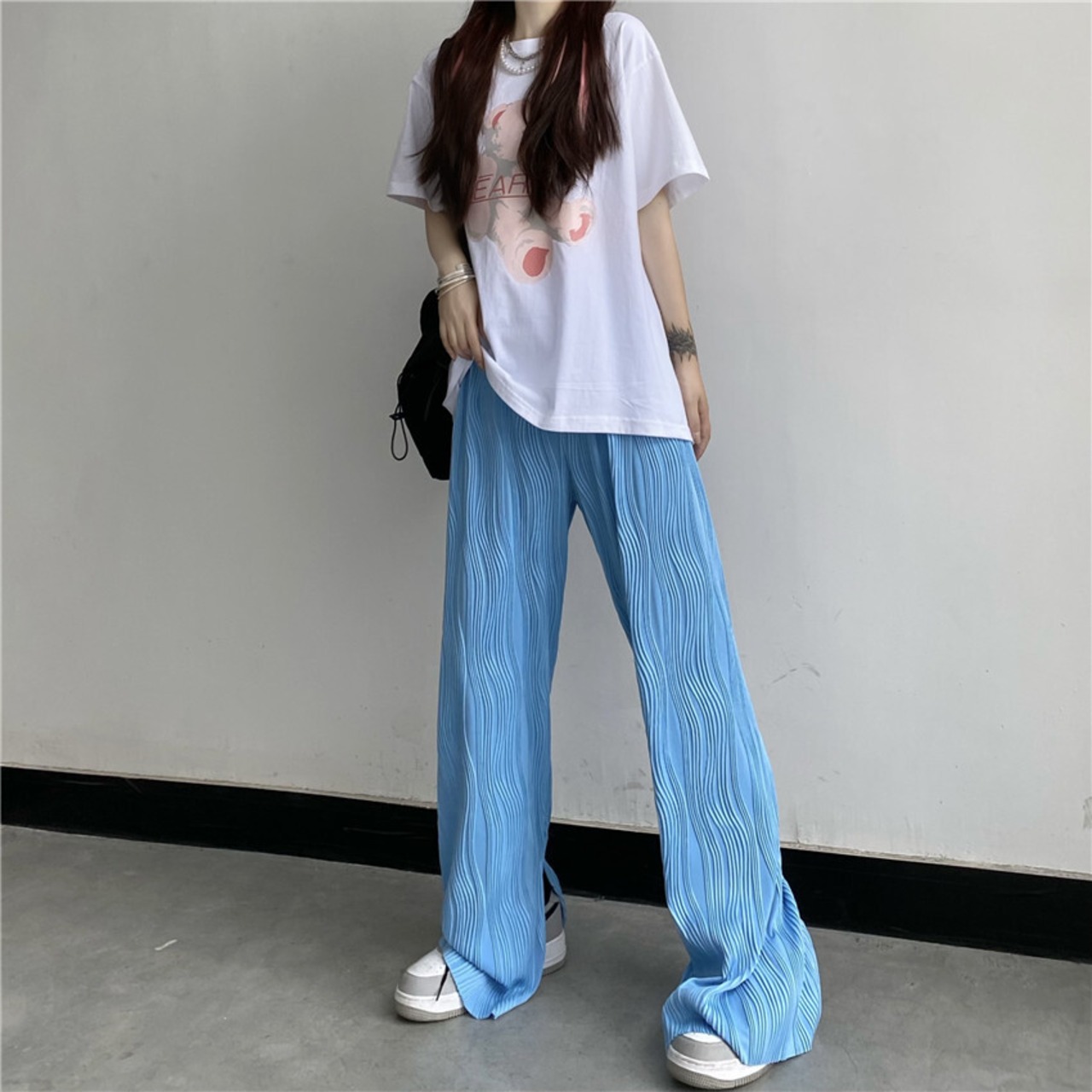 ワイドレッグパンツ レディース夏服パターンカジュアルハイウェストウェストルーズ 夏物 ワイドパンツ ボーイズ ウエスト コーデ モノクロ Studio10980077825 | pLegLad Studios