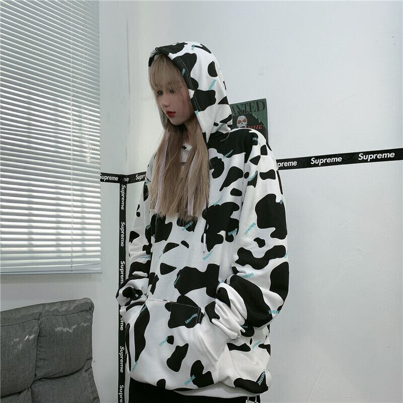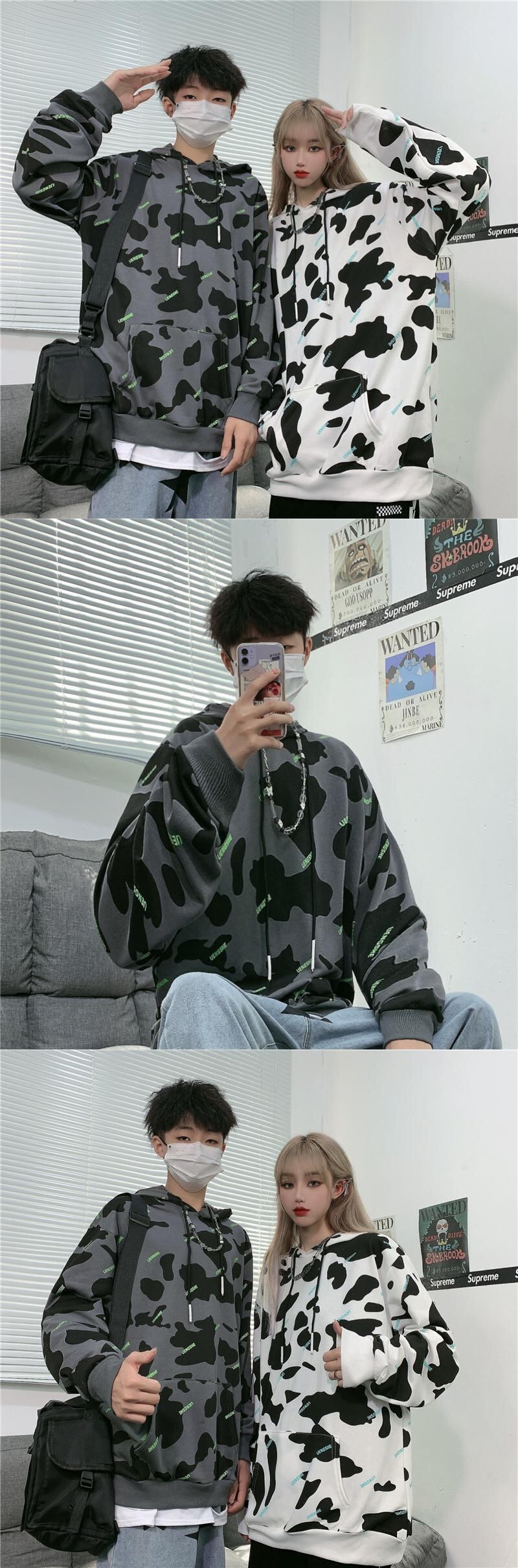 スタイルフードセーター レディース秋物韓国ファッションパターンルーズトップス コート ロング 原宿 オータム 長袖 コーデ モノクロ Studio90818081955 | pLegLad Studios