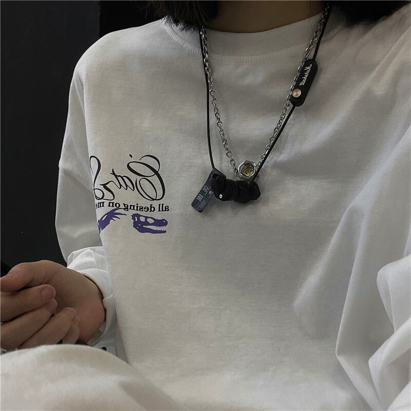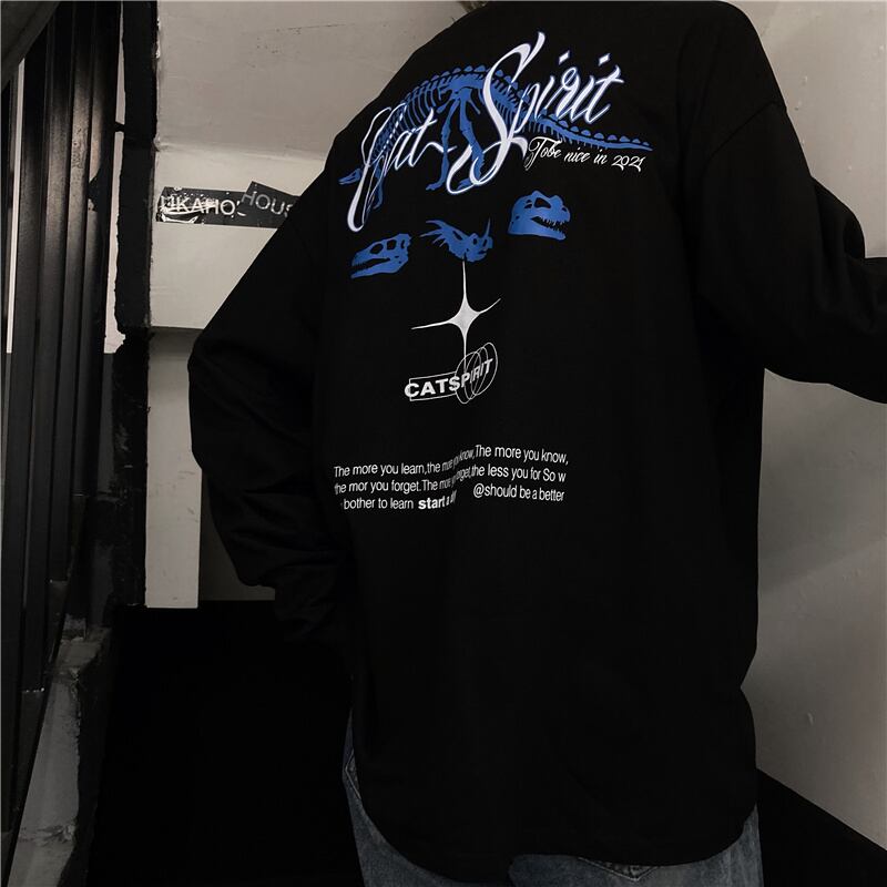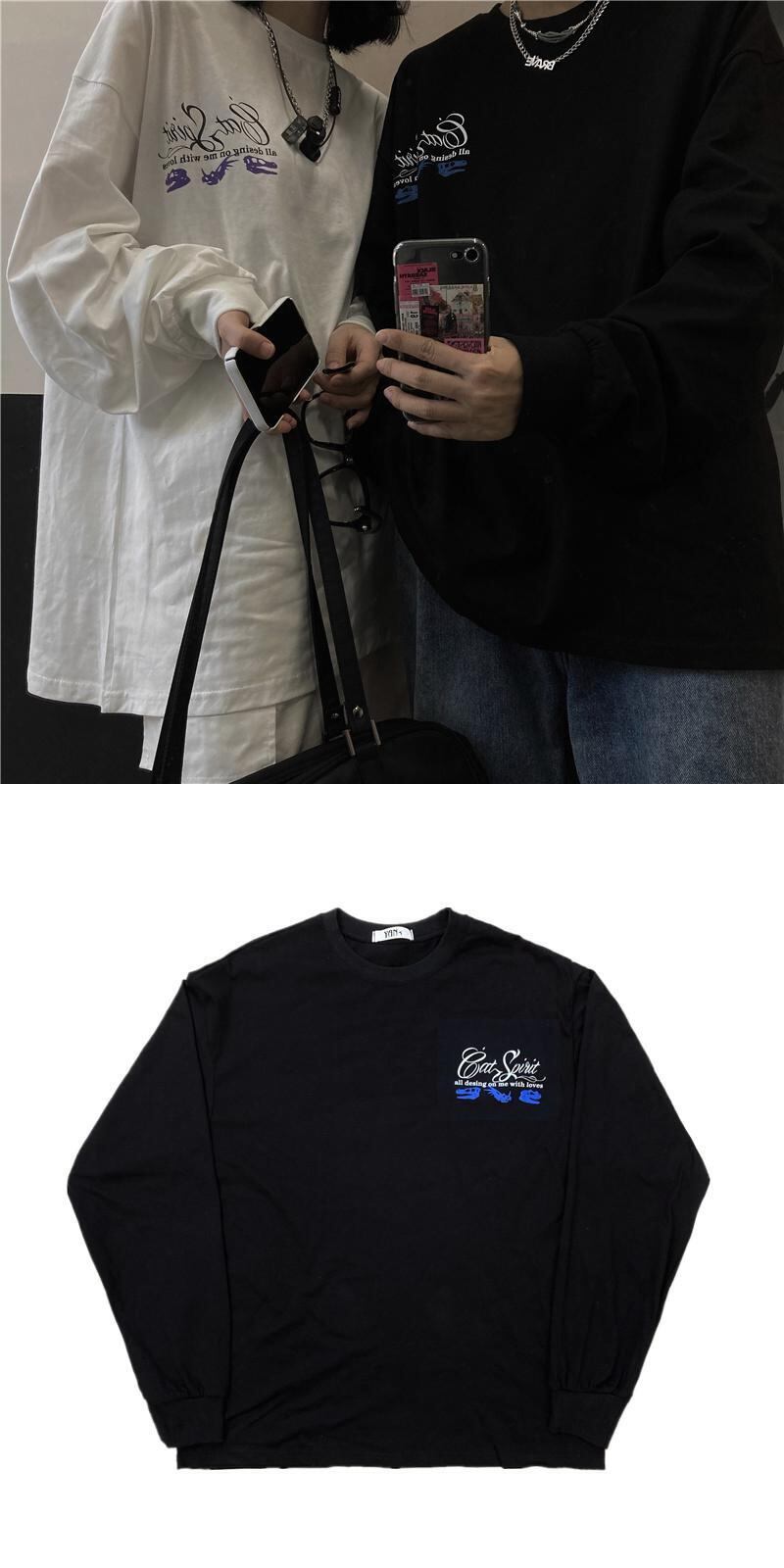 カジュアルTシャツレディース秋物韓国ファッショントレンドプリント柄ルーズトップス ロング オータム スタイル 長袖 コーデ モノクロ Studio68386862359 | pLegLad Studios