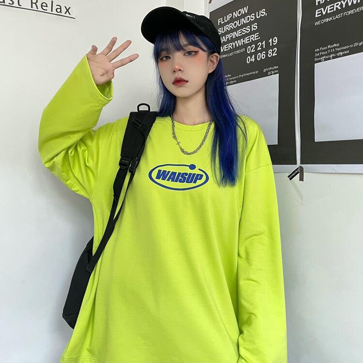 Tシャツシャツ レディース秋物韓国ファッショントレンドグリーンプリントカジュアルゆったり ロング オータム スタイル 長袖 コーデ モノクロ Studio56422895841 | pLegLad Studios
