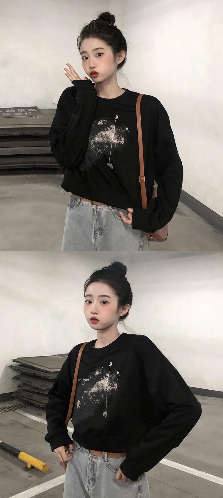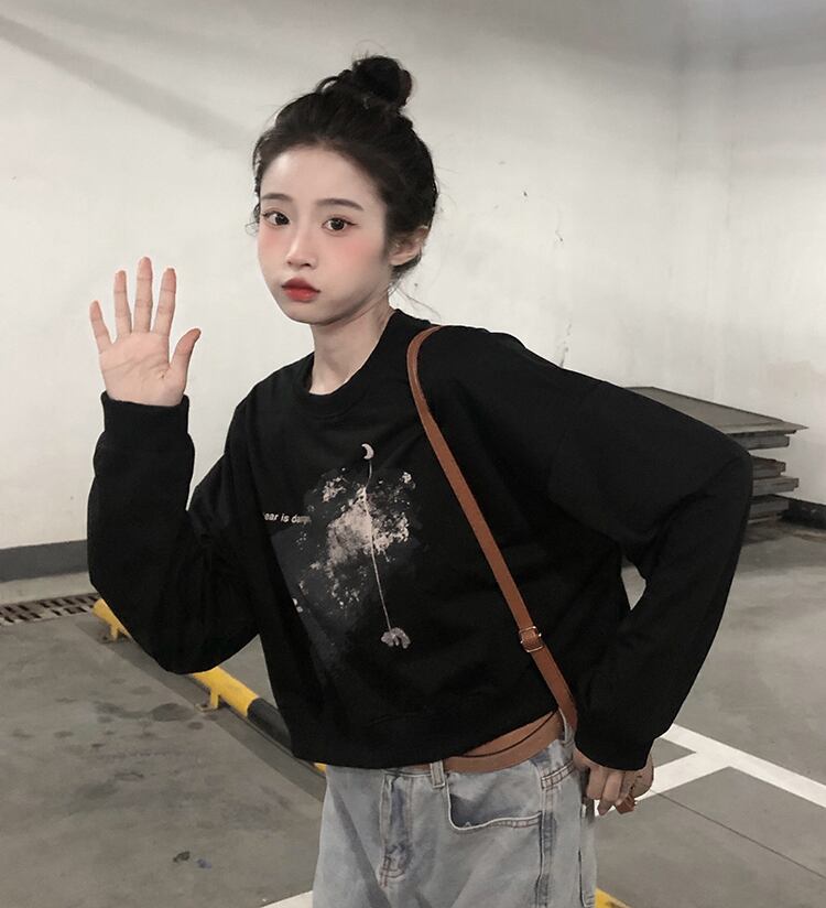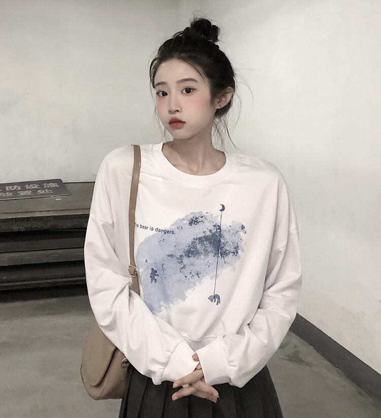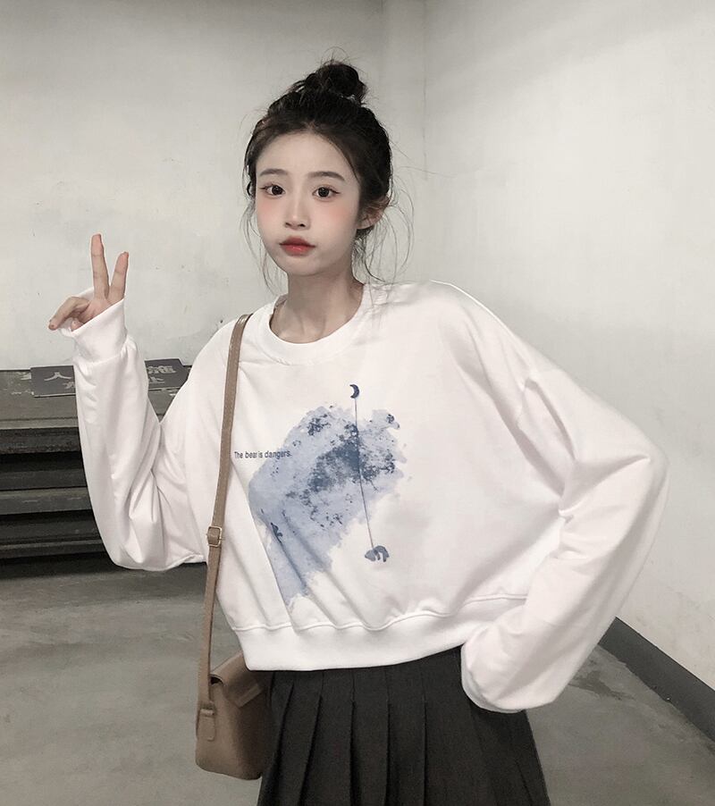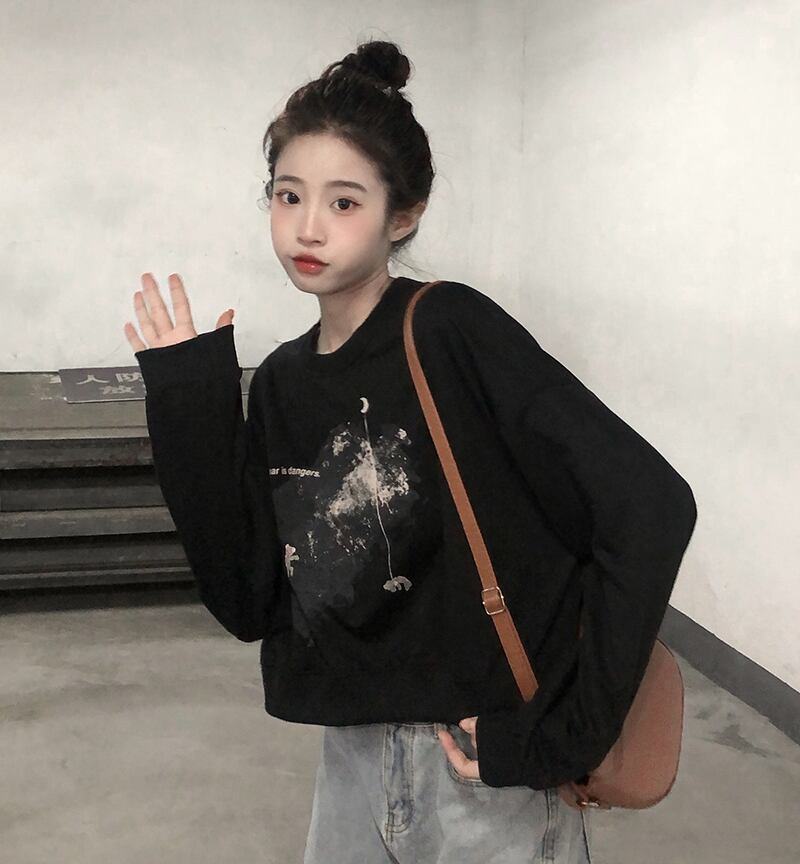 ショートセーター レディース秋物韓国ファッショントレンドプリントルーズジャケット ロング オータム ボーイズ スタイル 長袖 コーデ モノクロ Studio40697930283 | pLegLad Studios