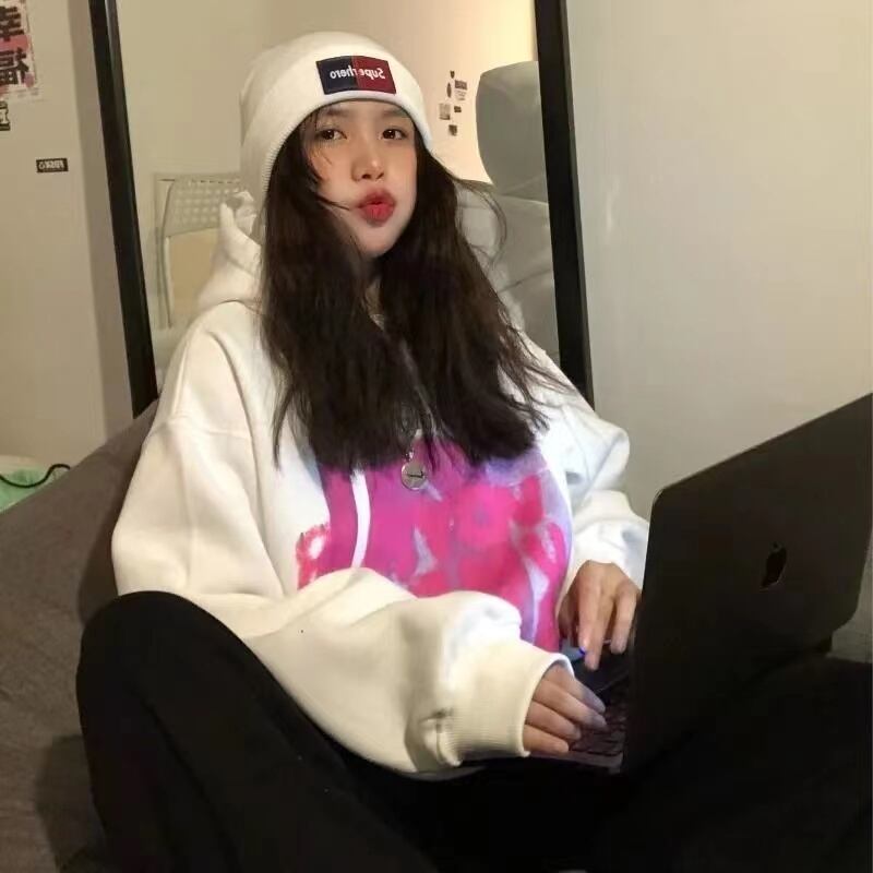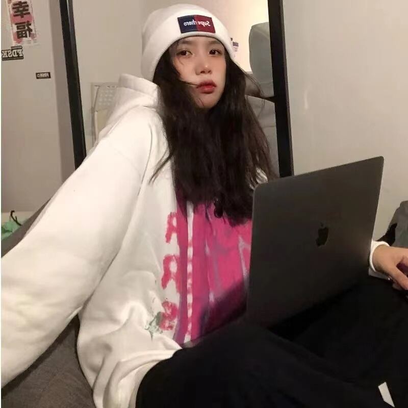 薄手フードセーター レディース秋物韓国ファッショントレンドプリントルーズプルオーバー トップス オータム スタイル コーデ モノクロ Studio88135888624 | pLegLad Studios
