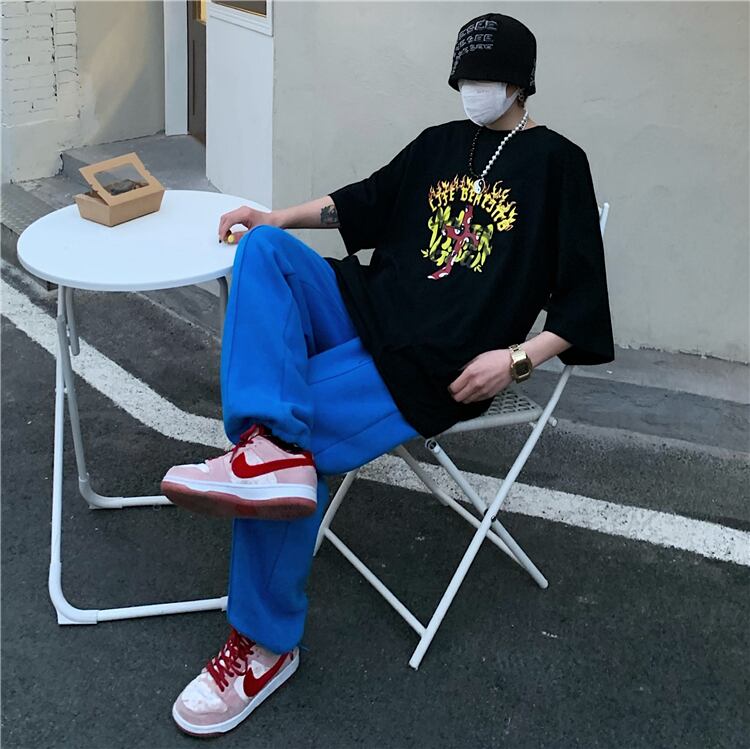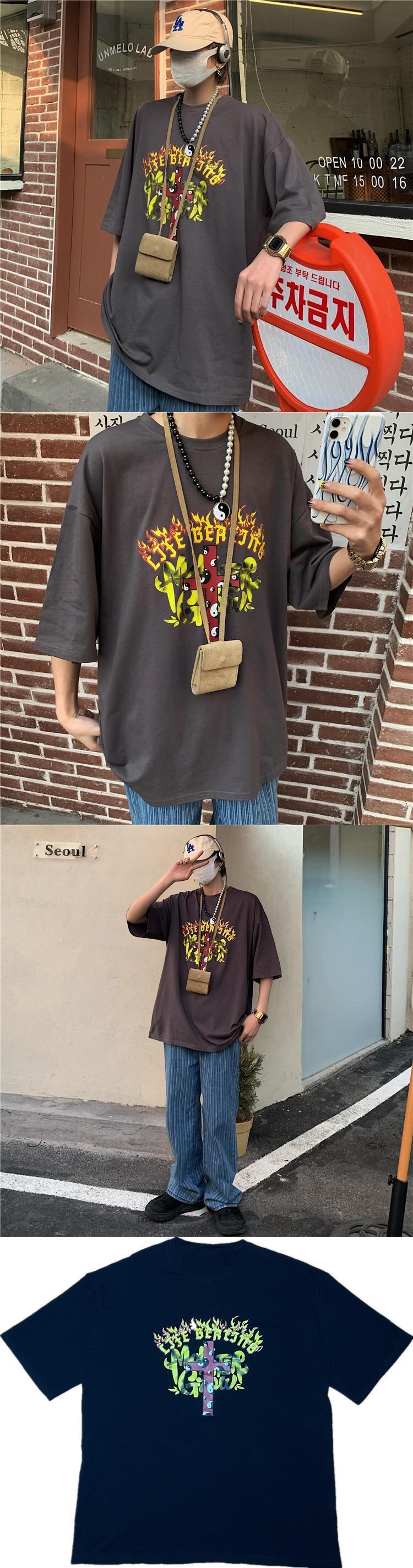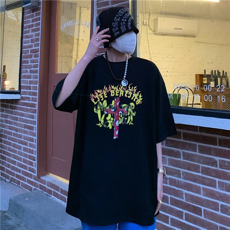 Tシャツレディース夏服韓国ファッショントレンドクロスプリント柄ルーズラウンドネックトップス 夏物 Oネック スタイル コーデ モノクロ Studio15211825729 | pLegLad Studios