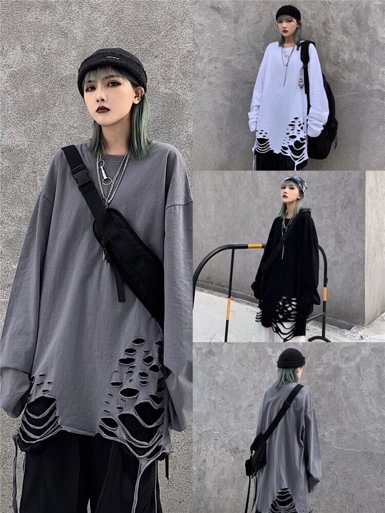 ホワイトゆったりシャツ レディーストレンドTシャツルーズ韓国ファッションスプリング ロング 原宿 春物 ボーイズ スタイル 長袖 コーデ モノクロ Studio26228110407 | pLegLad Studios