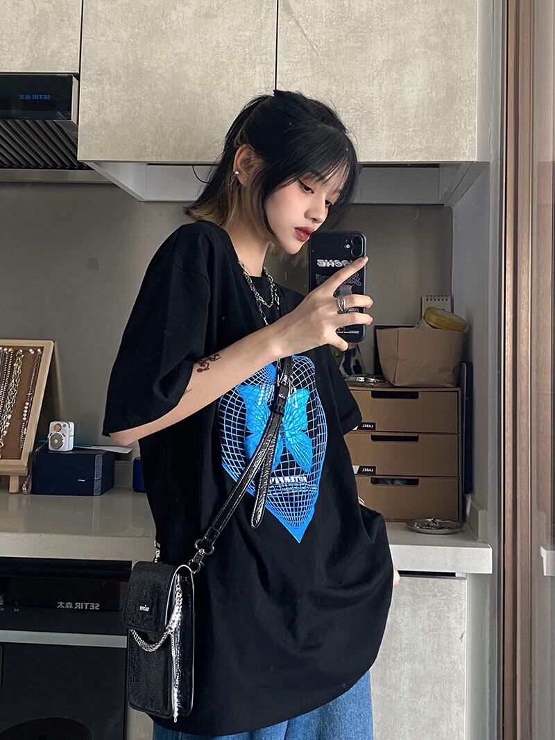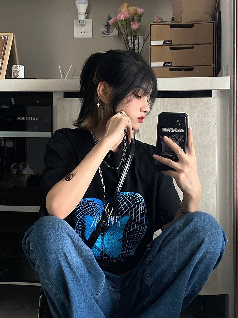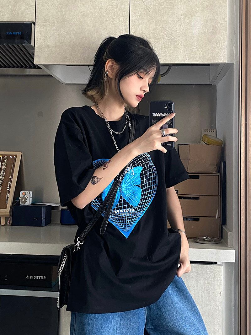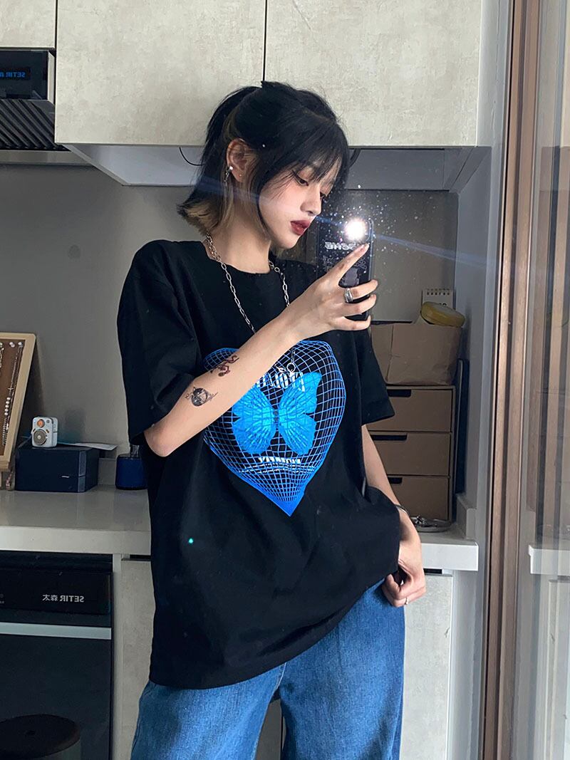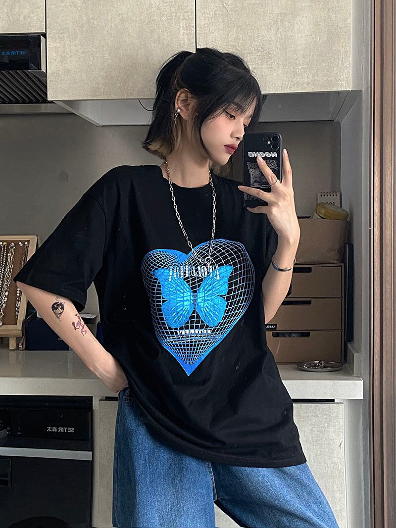カジュアルTシャツレディース夏服韓国ファッションNEWButterflyデザイン プリント柄トップス 夏物 スタイル コーデ モノクロ Studio26397816394 | pLegLad Studios