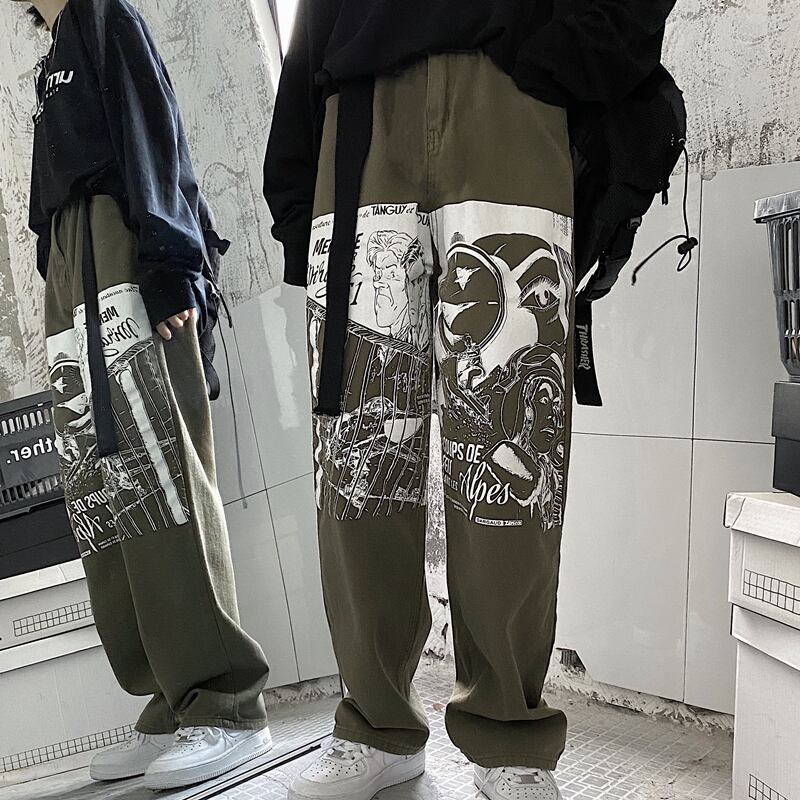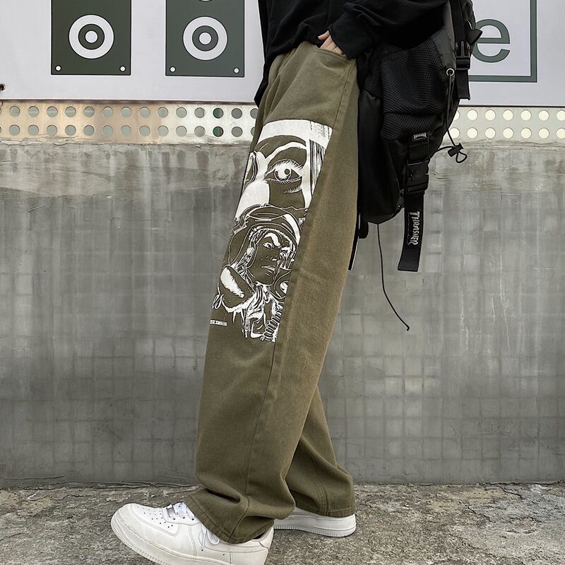 ジーンズ レディース秋物韓国ファッションNEWプリントハイウェストウェストカジュアルパンツ オータム ボーイズ スタイル ウエスト コーデ モノクロ Studio61487655376 | pLegLad Studios