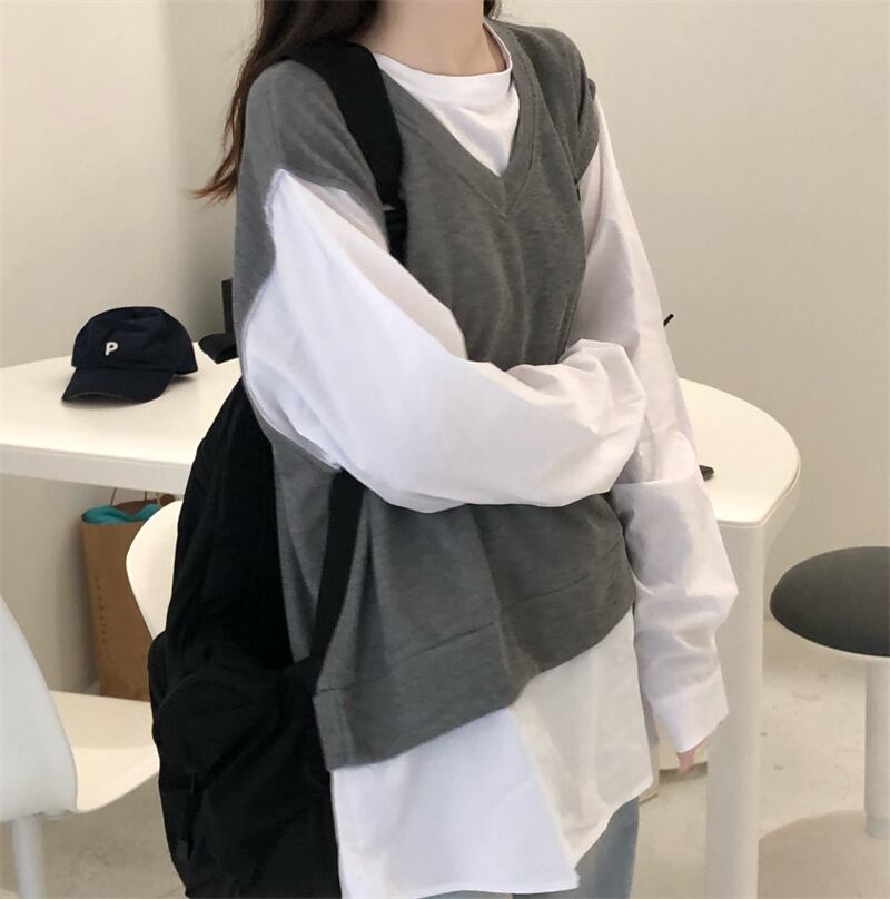 秋物韓国ファッションNEWルーズラウンドネックセーター ジャケット レディース ロング オータム Oネック ボーイズ 長袖 コーデ モノクロ Studio73041421225 | pLegLad Studios