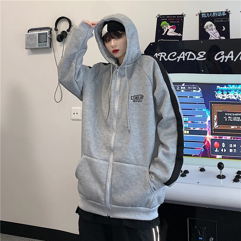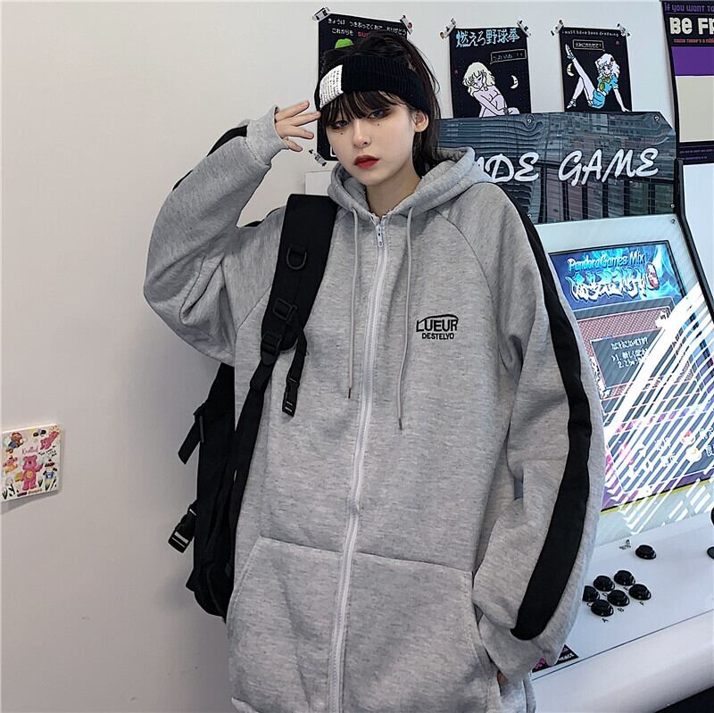 秋物フードセーター レディース韓国ファッションNEWルーズカーディガントップス コート オータム ボーイズ スタイル コーデ モノクロ Studio10462292544 | pLegLad Studios