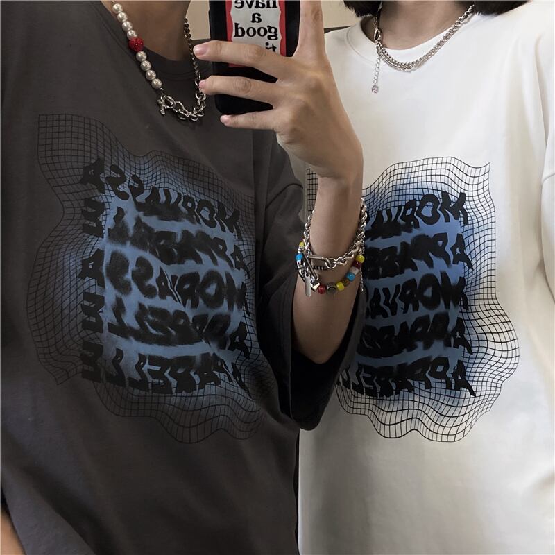 カジュアルラウンドネックTシャツレディース夏服韓国ファッションNEWプリントトップス 夏物 Oネック スタイル コーデ モノクロ Studio58162106315 | pLegLad Studios