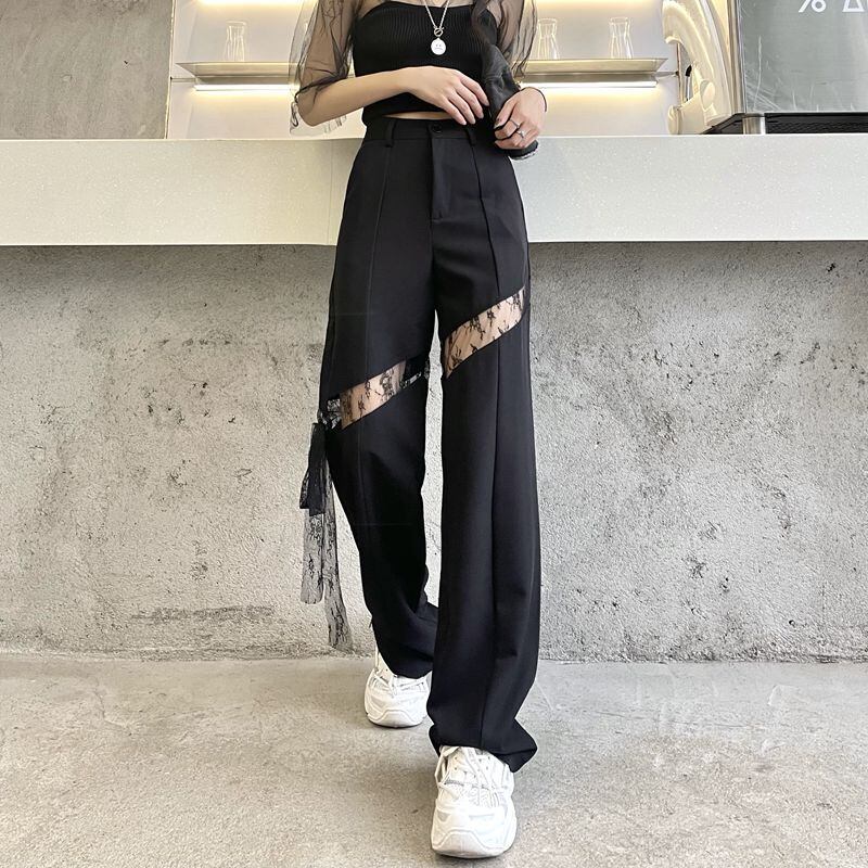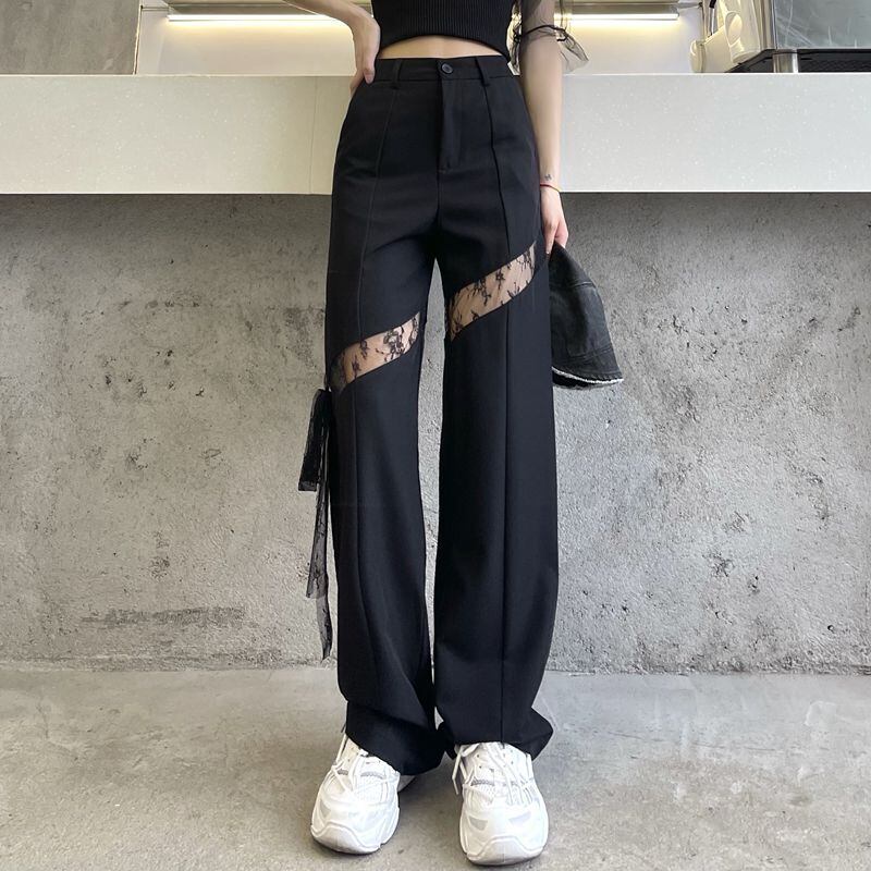 カジュアルレディース夏服スタイル韓国ファッションレースハイウェストウェストスリムパンツ 夏物 ステッチ ウエスト コーデ モノクロ Studio28987807472 | pLegLad Studios