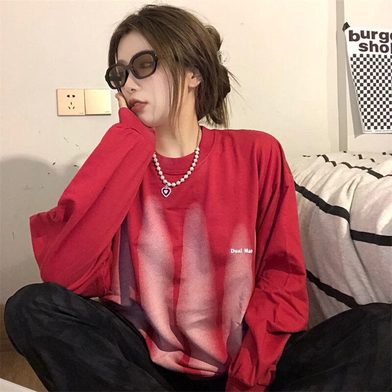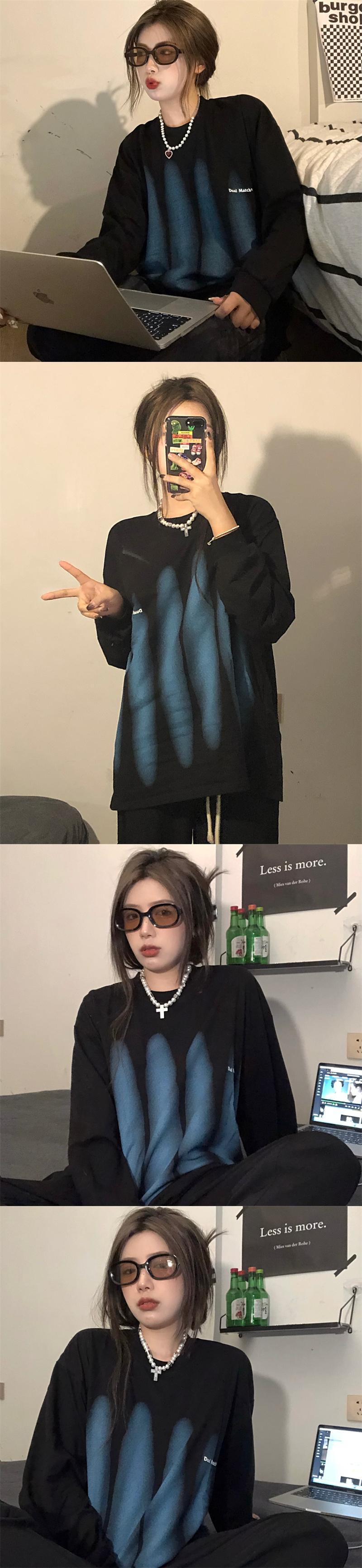Tシャツレディース秋物韓国ファッションNEWスタンダードプリントルーズセーター ロング レトロ オータム スタイル 長袖 ミドル丈 コーデ モノクロ Studio52265695335 | pLegLad Studios