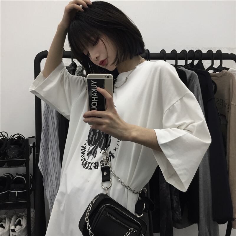 夏服Tシャツレディース韓国ファッションNEWスタンダードダークプリント柄ルーズトップス レトロ 夏物 スタイル コーデ モノクロ Studio70125660922 | pLegLad Studios