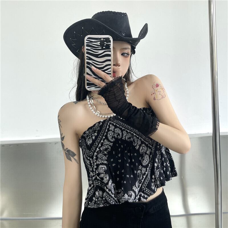 トップス ブラウス レディース夏服韓国ファッションNEWスタンダードFlowerデザイン ショート レトロ 夏物 フラワーデザイン ボーイズ スタイル Studios96413394465 | pLegLad Studios