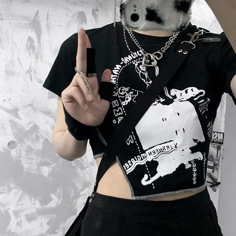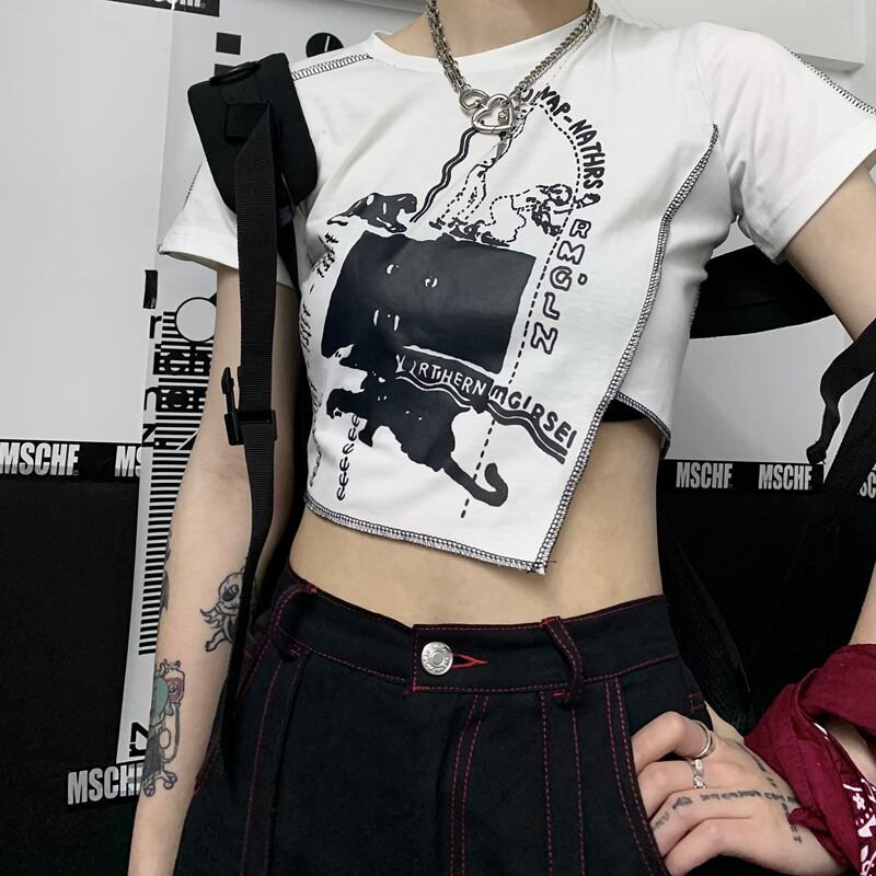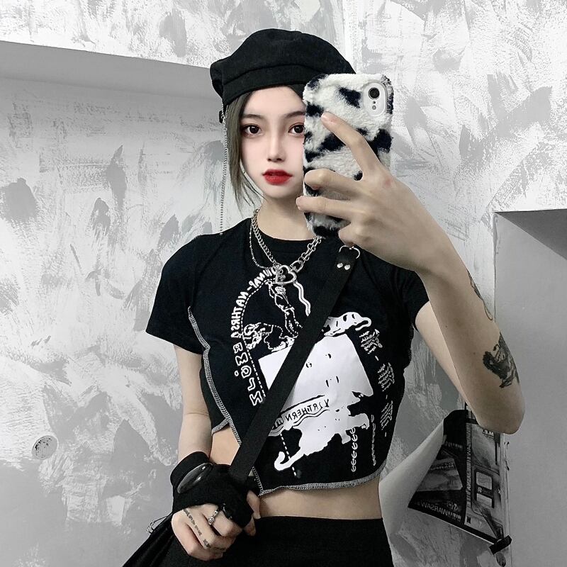 ショートTシャツレディース夏服韓国ファッションNEWスタンダードプリント薄手クロップトップ トップス レトロ 夏物 ステッチ スタイル Studios23709937571 | pLegLad Studios