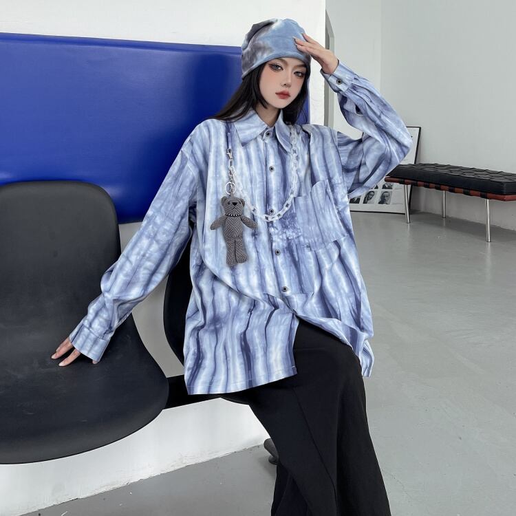 秋物韓国ファッションNEWスタンダードチェーン ルーズシャツ トップス レディース ロング レトロ ペンダント オータム スタイル 長袖 Studios91257333172 | pLegLad Studios