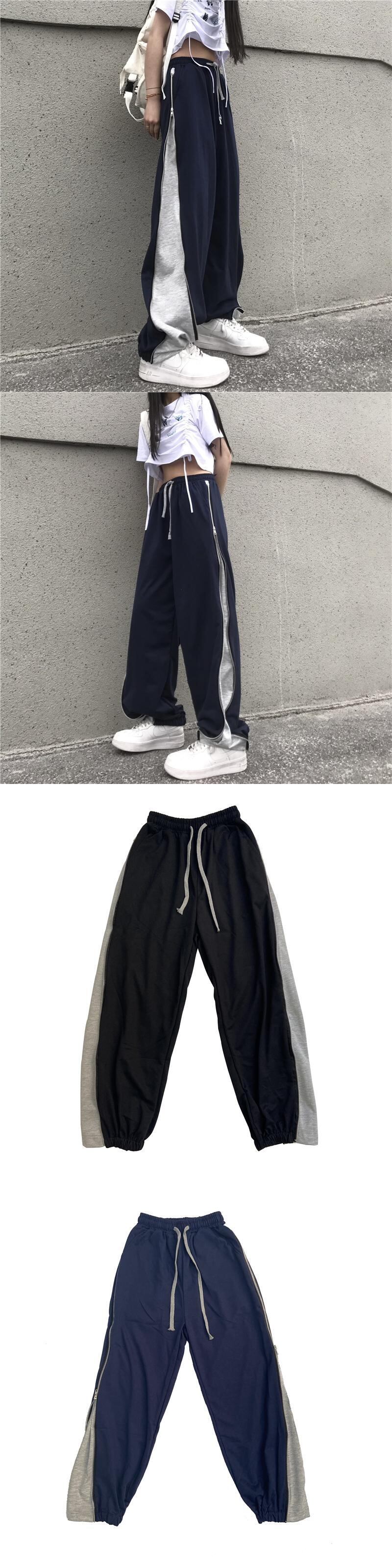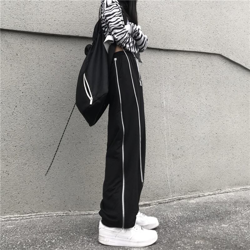 ストレッチウェストカジュアルパンツ 秋物NEWサイドジッパーハイウェストワイドレッグ エラスティック 伸縮 オータム ワイドパンツ ウエスト コーデ モノクロ Studio35612287652 | pLegLad Studios