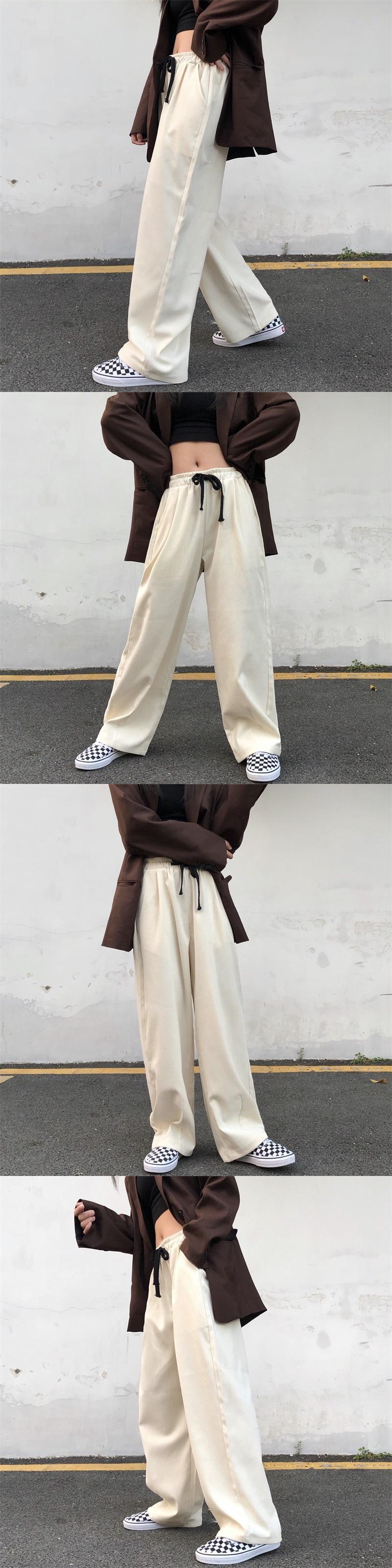 ワイドレッグカジュアルパンツ レディース夏服韓国ファッションNEWスタンダードソリッド カラールーズ薄手ハイウェストウェスト レトロ 夏物 ワイドパンツ ソリッドカラー スタイル ウエスト Studios55754480636 | pLegLad Studios