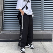 カジュアルパンツ レディース韓国ファッションNEWブレストルーズハイウェストウェスト薄手ワイドレッグ ストリート ワイドパンツ スタイル ウエスト Studios37515764276 | pLegLad Studios