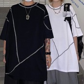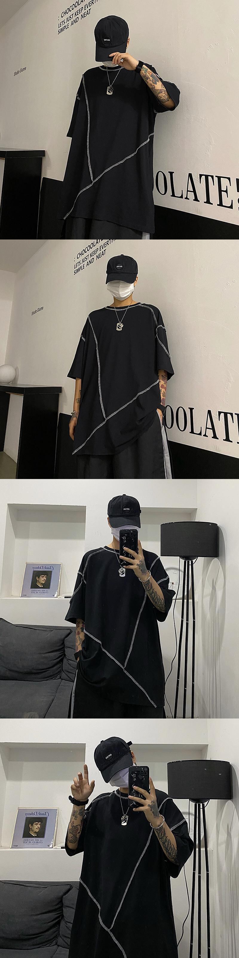 夏服韓国ファッションNEWスタンダードダークラインカジュアルルーズTシャツメンズレディース レトロ ストリート 夏物 スタイル Studios64175193503 | pLegLad Studios