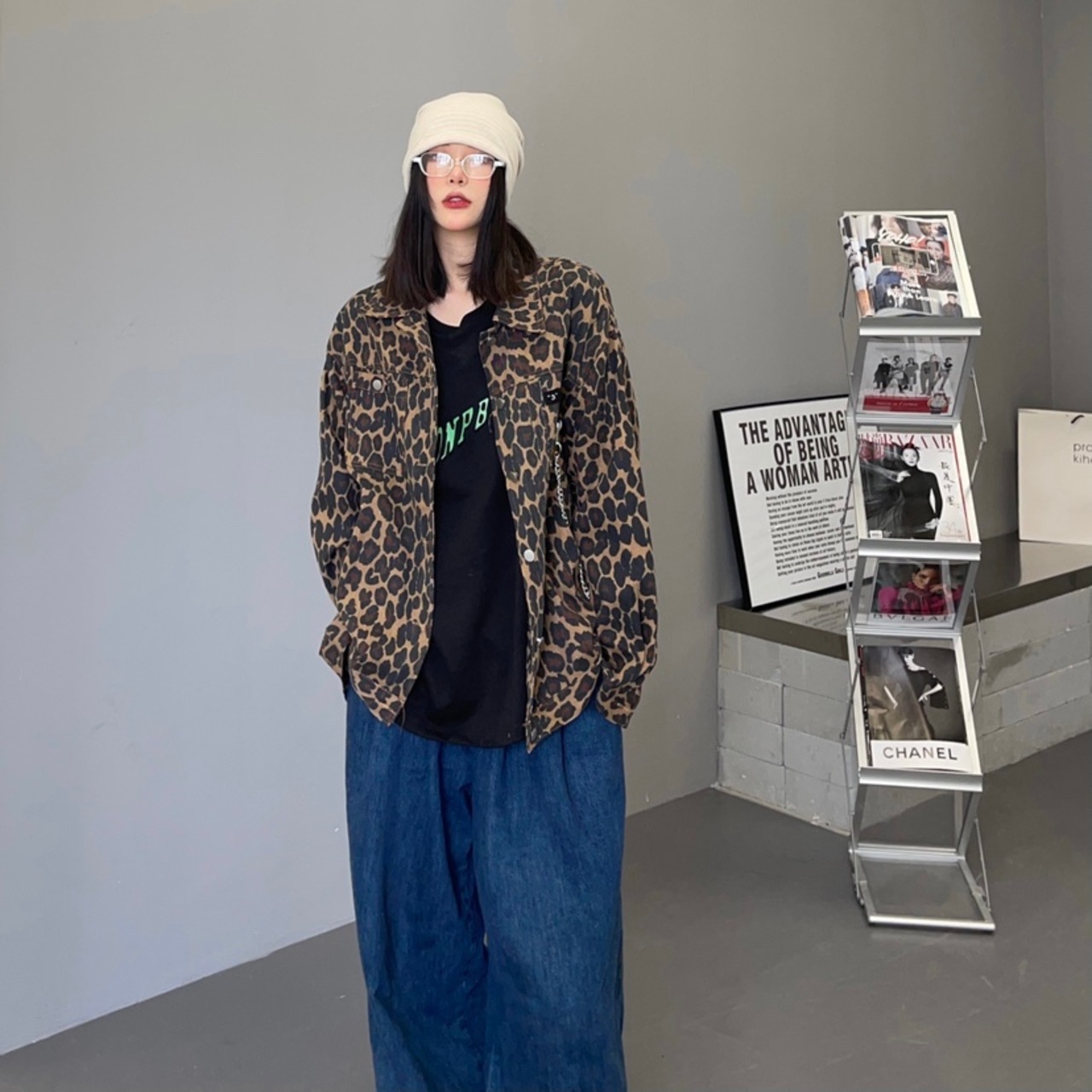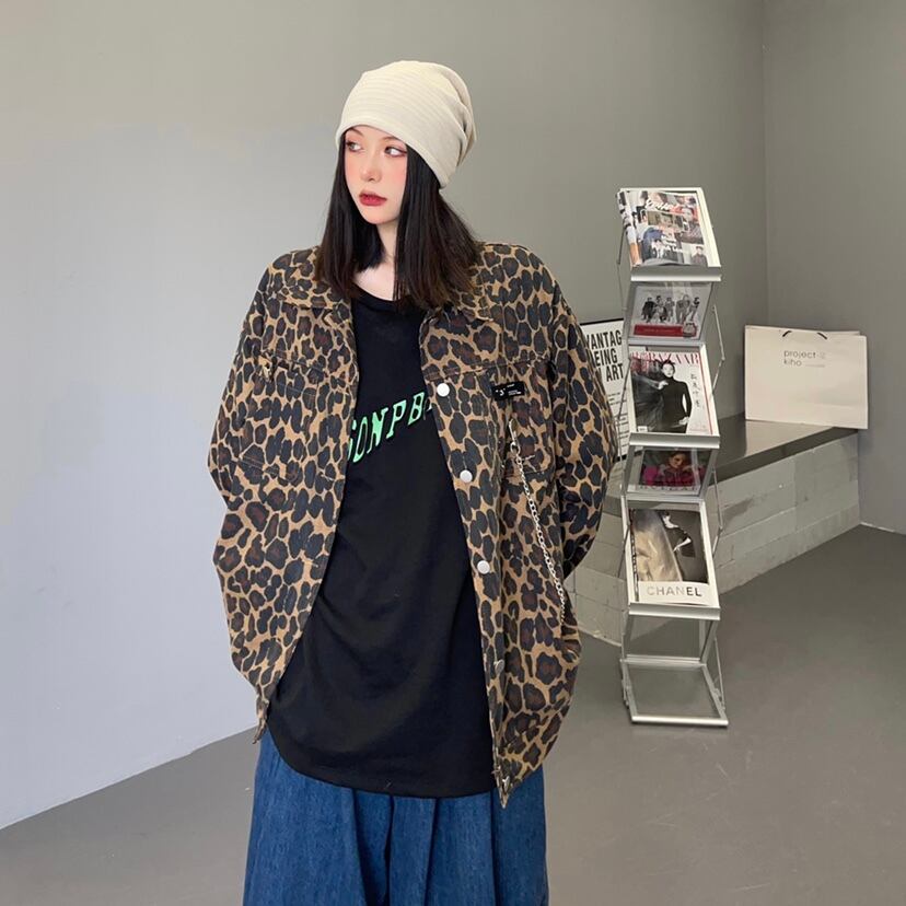 レオパードプリント柄チェーン ジャケット レディース秋物韓国ファッションNEWルーズトップス ロング オータム スタイル 長袖 コーデ モノクロ Studio16882318449 | pLegLad Studios