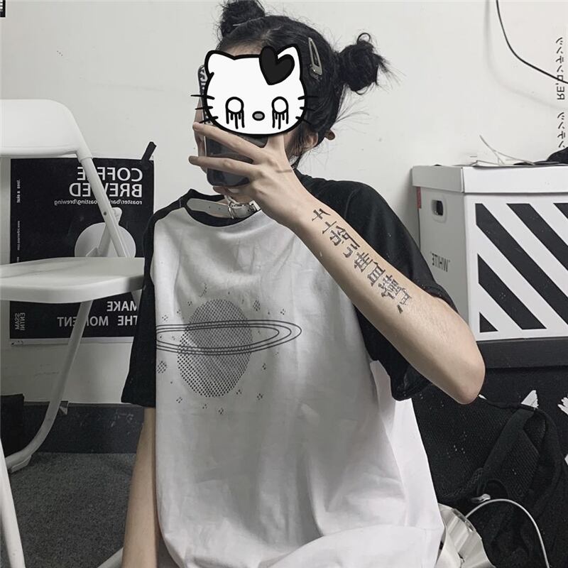 Tシャツレディース夏服韓国ファッションNEWスタンダードプリントルーズカラーカジュアルトップス レトロ 夏物 スタイル コーデ モノクロ Studio29338319662 | pLegLad Studios