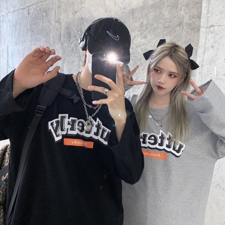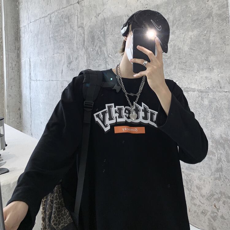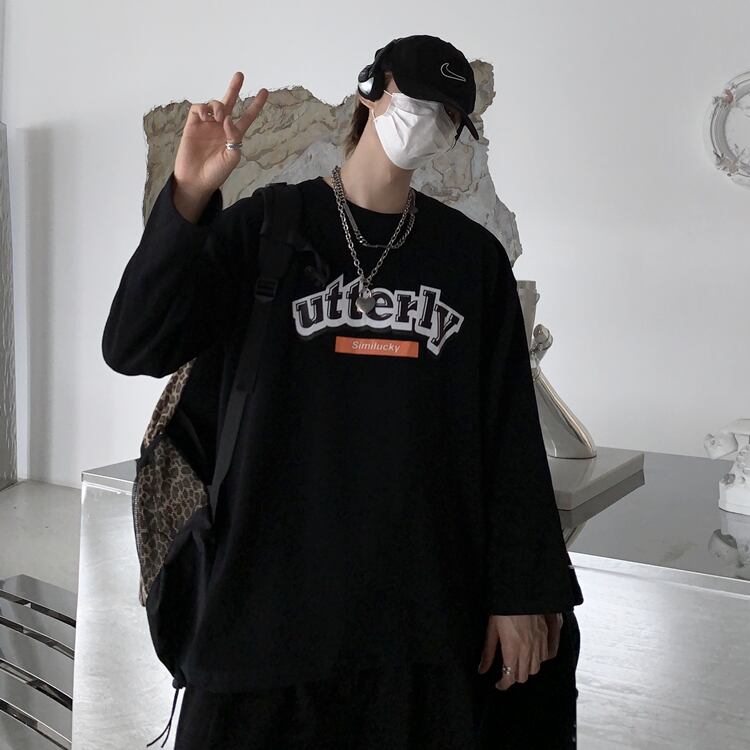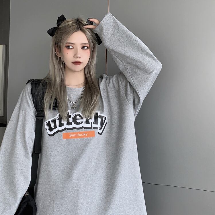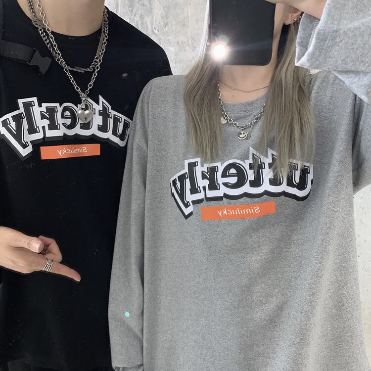 秋物韓国ファッションNEWプリントルーズTシャツシャツ ゆったりレディース ロング 原宿 オータム スタイル 長袖 コーデ モノクロ Studio41341384645 | pLegLad Studios